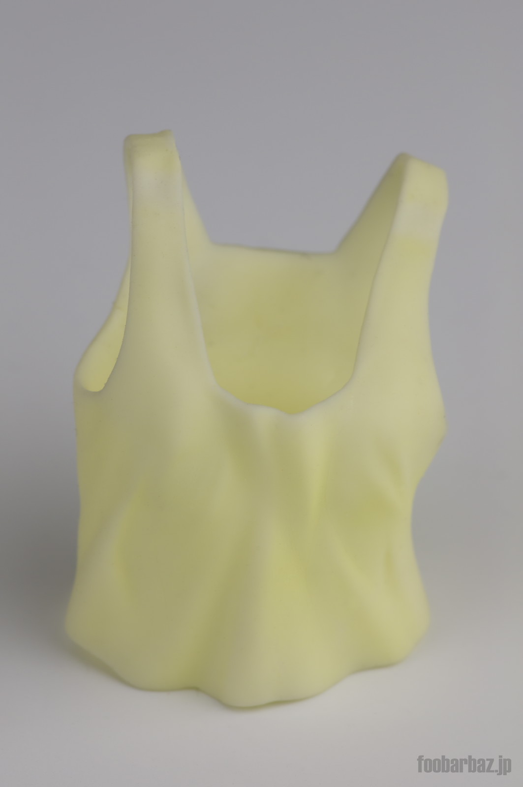 | キャミソールはかなり柔らかめの,ほとんどゴムの様な素材で出来ています。 取り外すときは肩ひもをうにょ~んと伸ばして腕から外し,下から引き抜くのが楽です。 伸ばしすぎてブチッといかないよう注意(^^; |