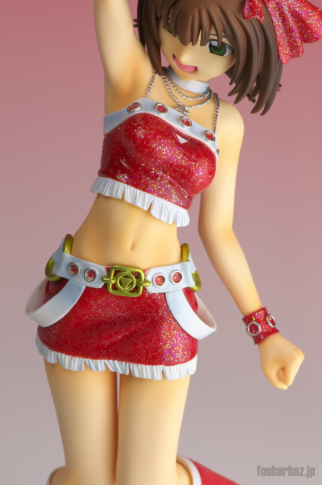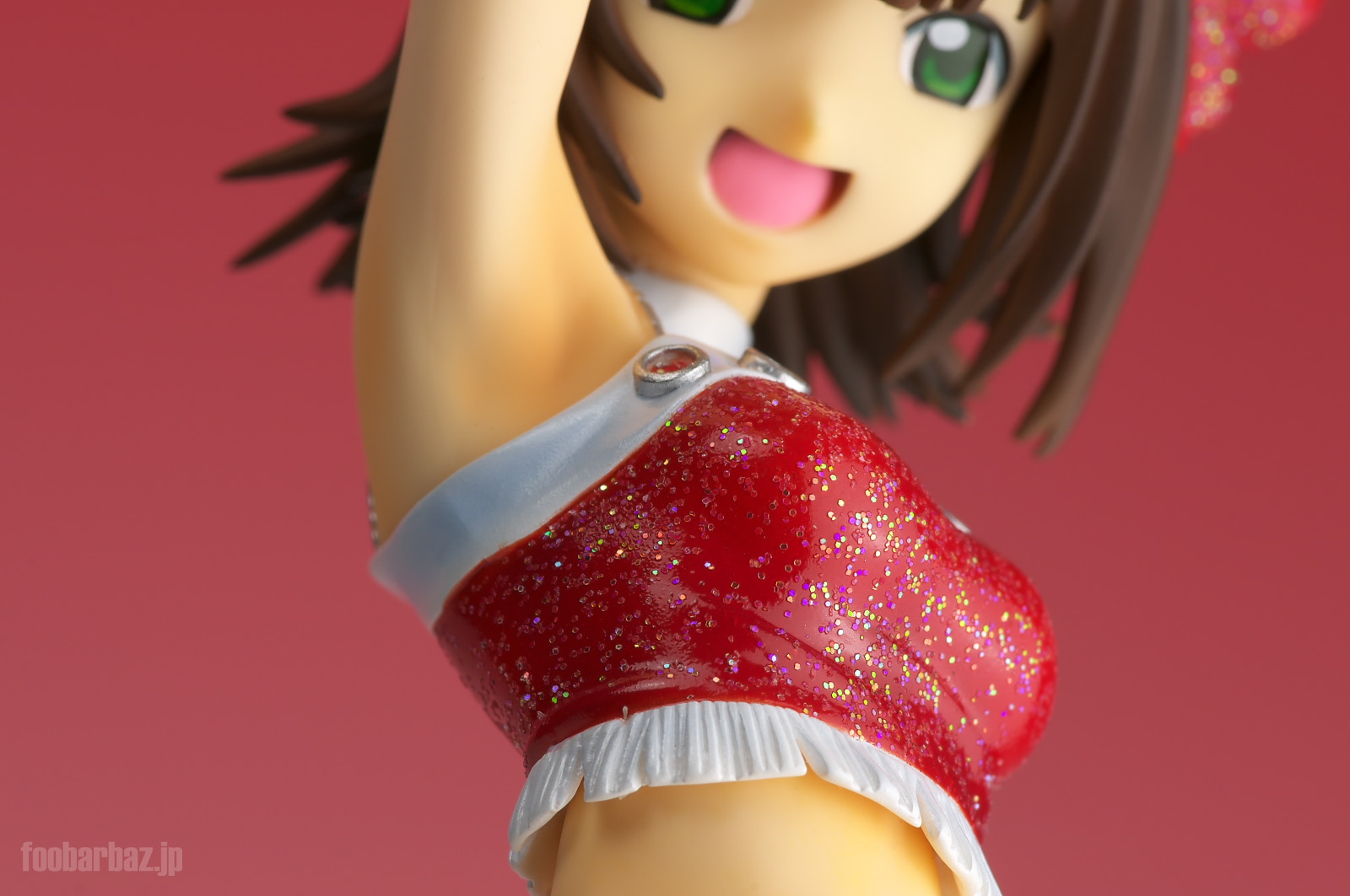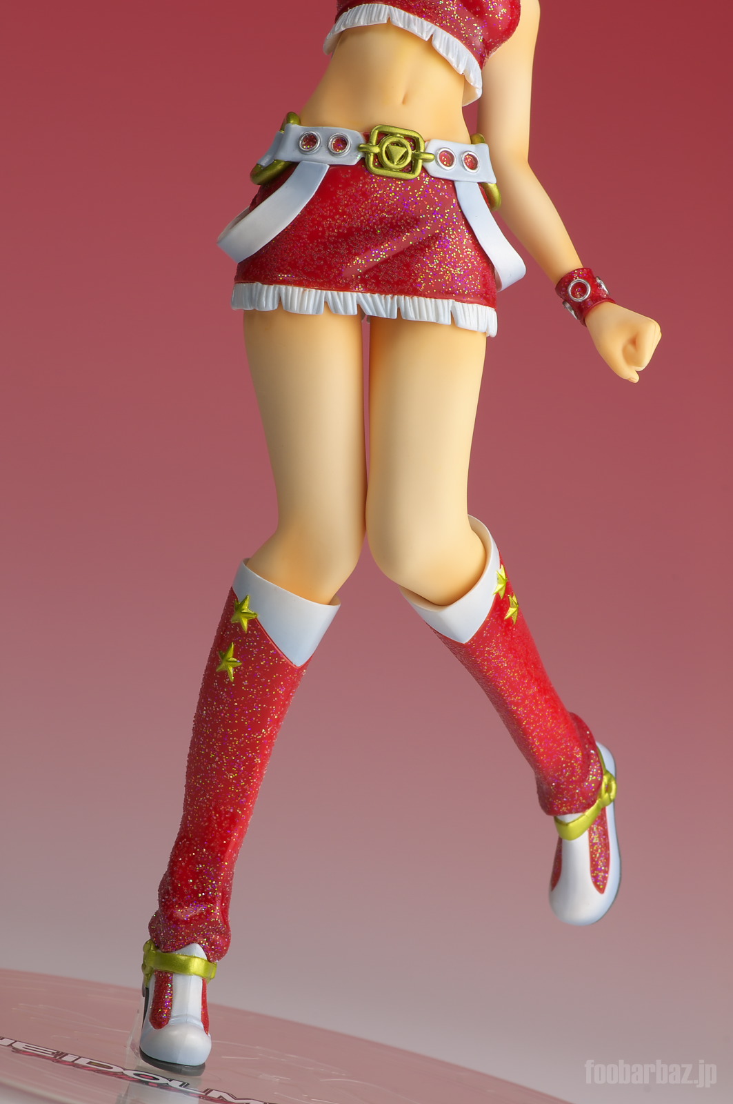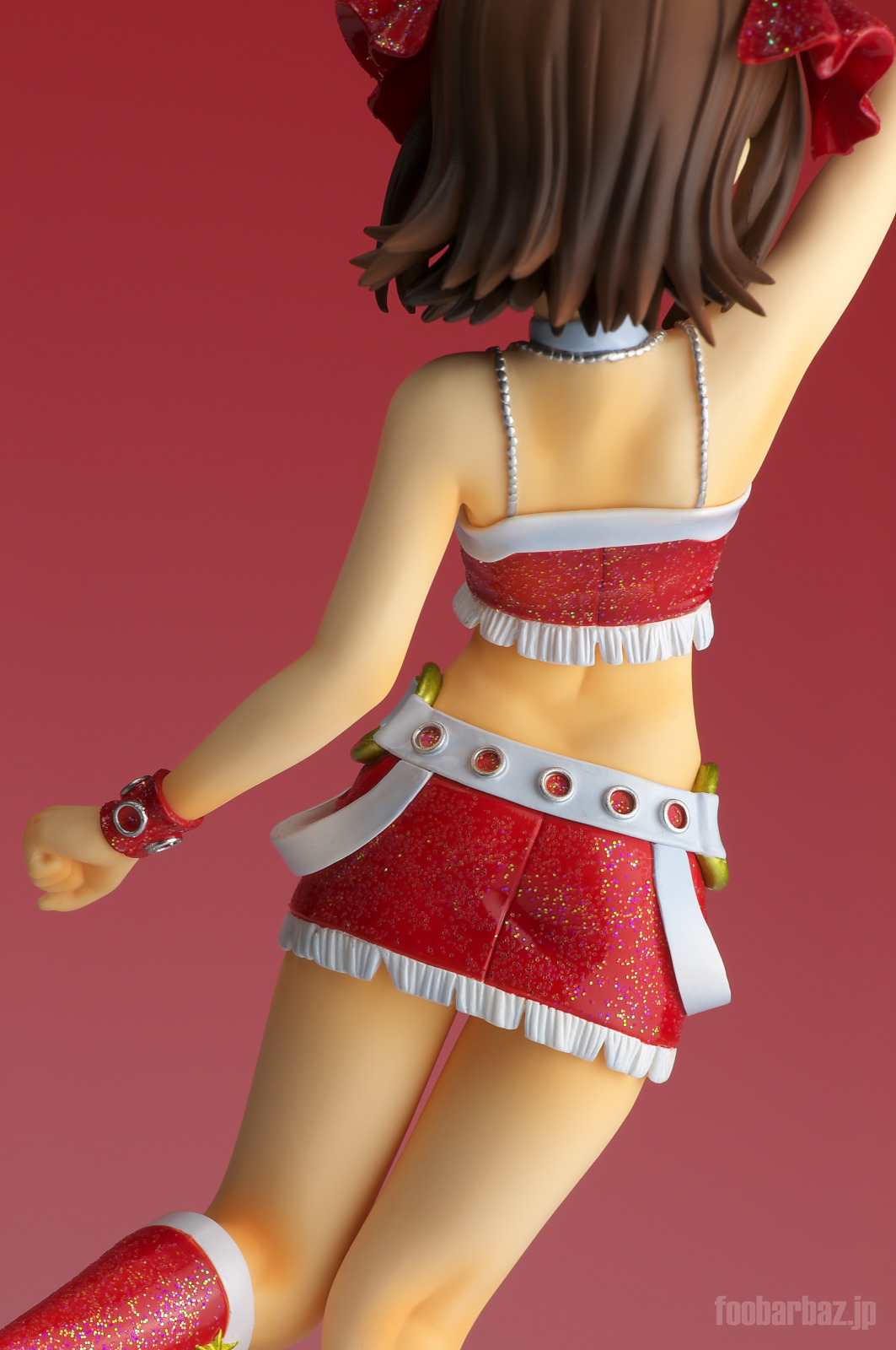 | 真っ赤なセパレートでラメ入りという,アイドルらしい衣装。 種類はレッドスパンコールというのでしょうか。 大きく開いたお腹と,背中の肉付きがセクシーですな~。 このラメを完成品でどこまで再現できるかが不安だったのですが,まったく問題なし。 それ以外の塗装も綺麗です。 | |