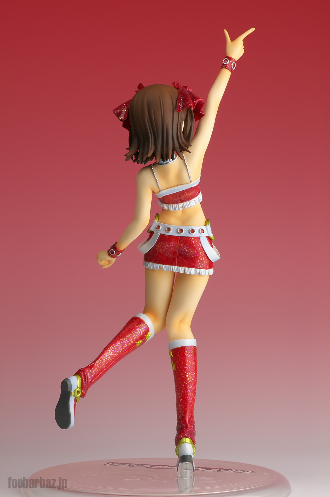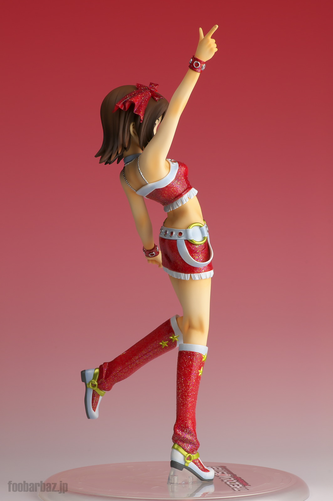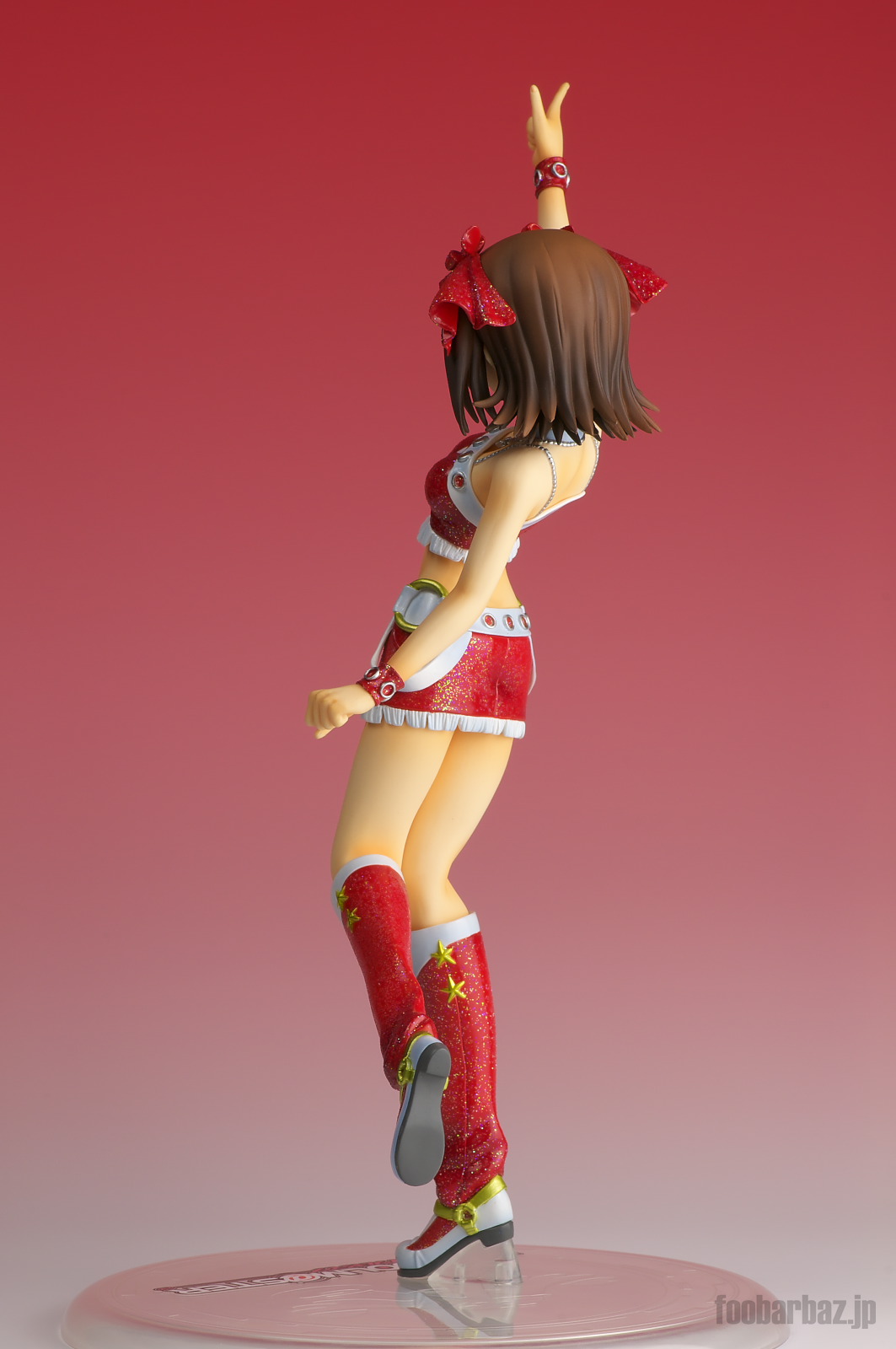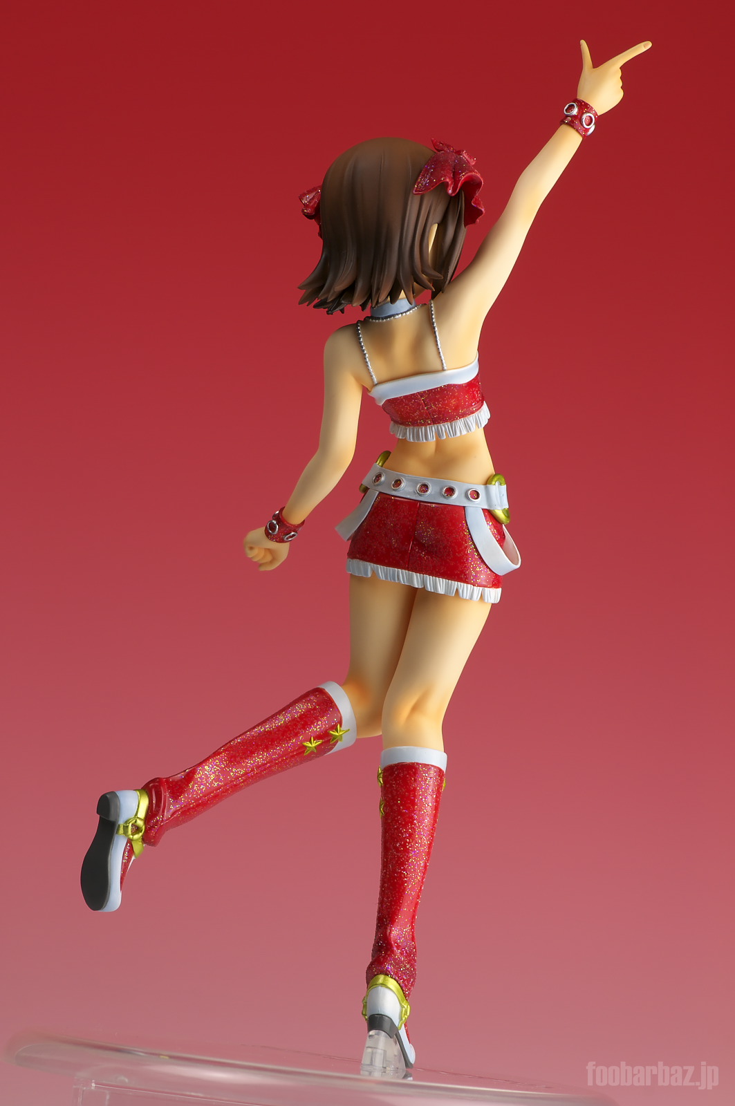 | 真っ赤なセパレートでラメ入りという,アイドルらしい衣装。 種類はレッドスパンコールというのでしょうか。 大きく開いたお腹と,背中の肉付きがセクシーですな~。 このラメを完成品でどこまで再現できるかが不安だったのですが,まったく問題なし。 それ以外の塗装も綺麗です。 | |