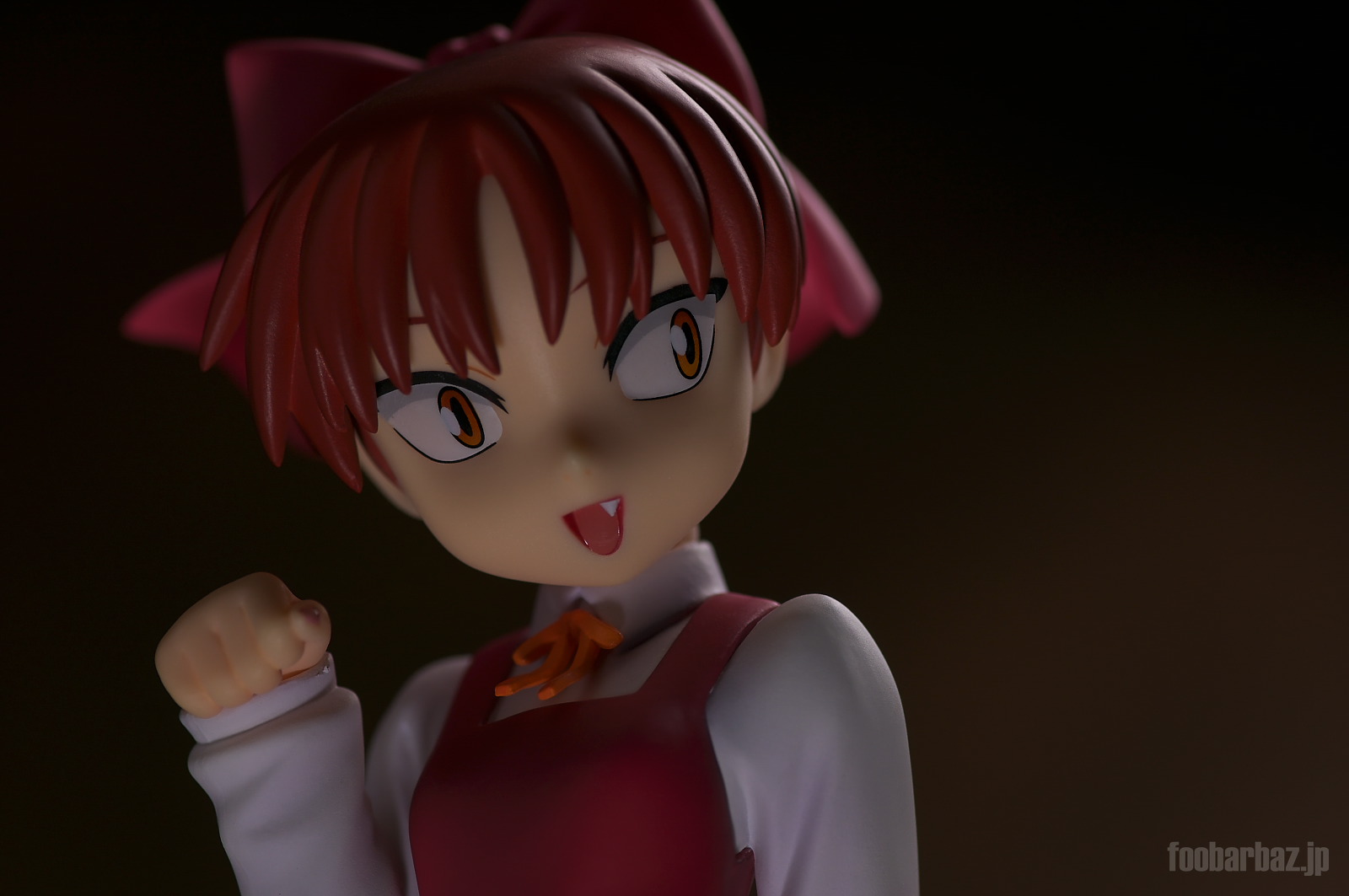 | 大きなにゃんこ目と八重歯がめっさかわいらしいですな~。 この辺の造形はさすが爪塚氏。アニメっぽいアイプリもきれいです。 ただ,若干肌の色が不健康にも感じます。 |