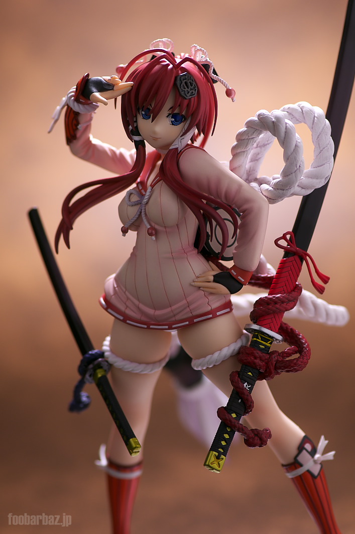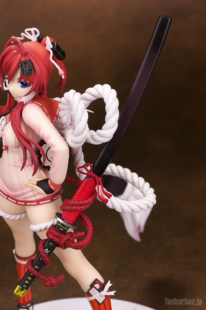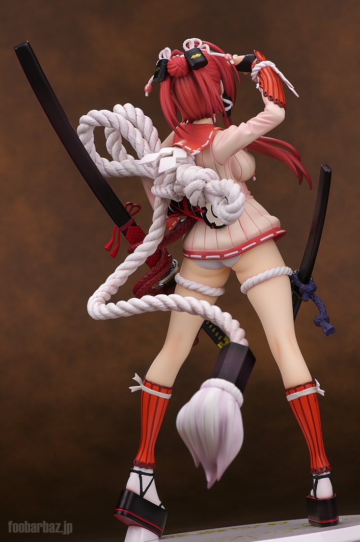 | セーラー服っぽい衣装ですが,裾がありえんくらい短いです(^^; 各所に飾り付けられた綱が戦国風味?。 | |