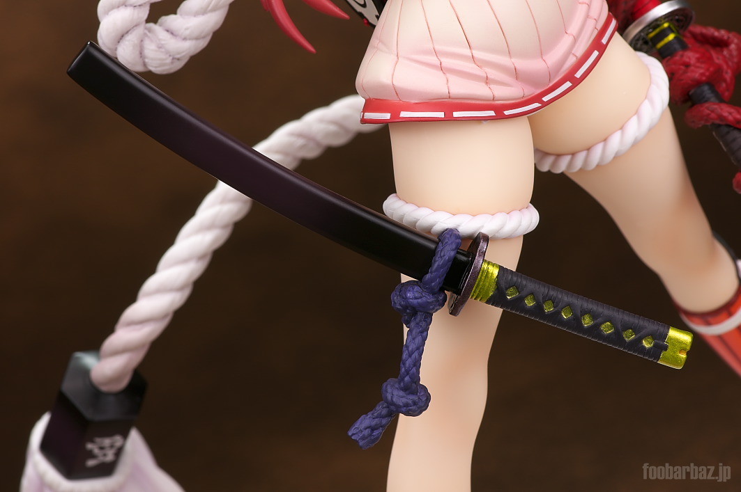 | 腿に巻いた綱から下げた大小。 拵えも大変リアル。 |