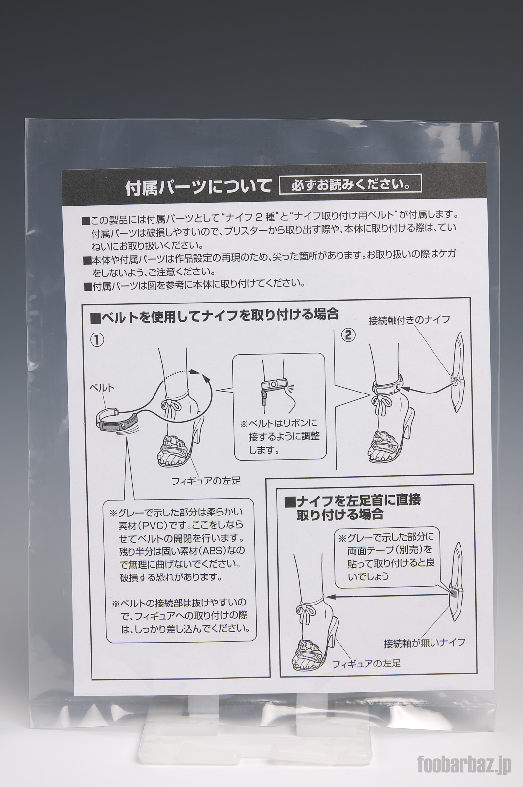 | 付属品のナイフは,ベルトに取り付けるためのダボありのものと,両面テープなどで取り付けるためのダボ無しのものの2種類。 |