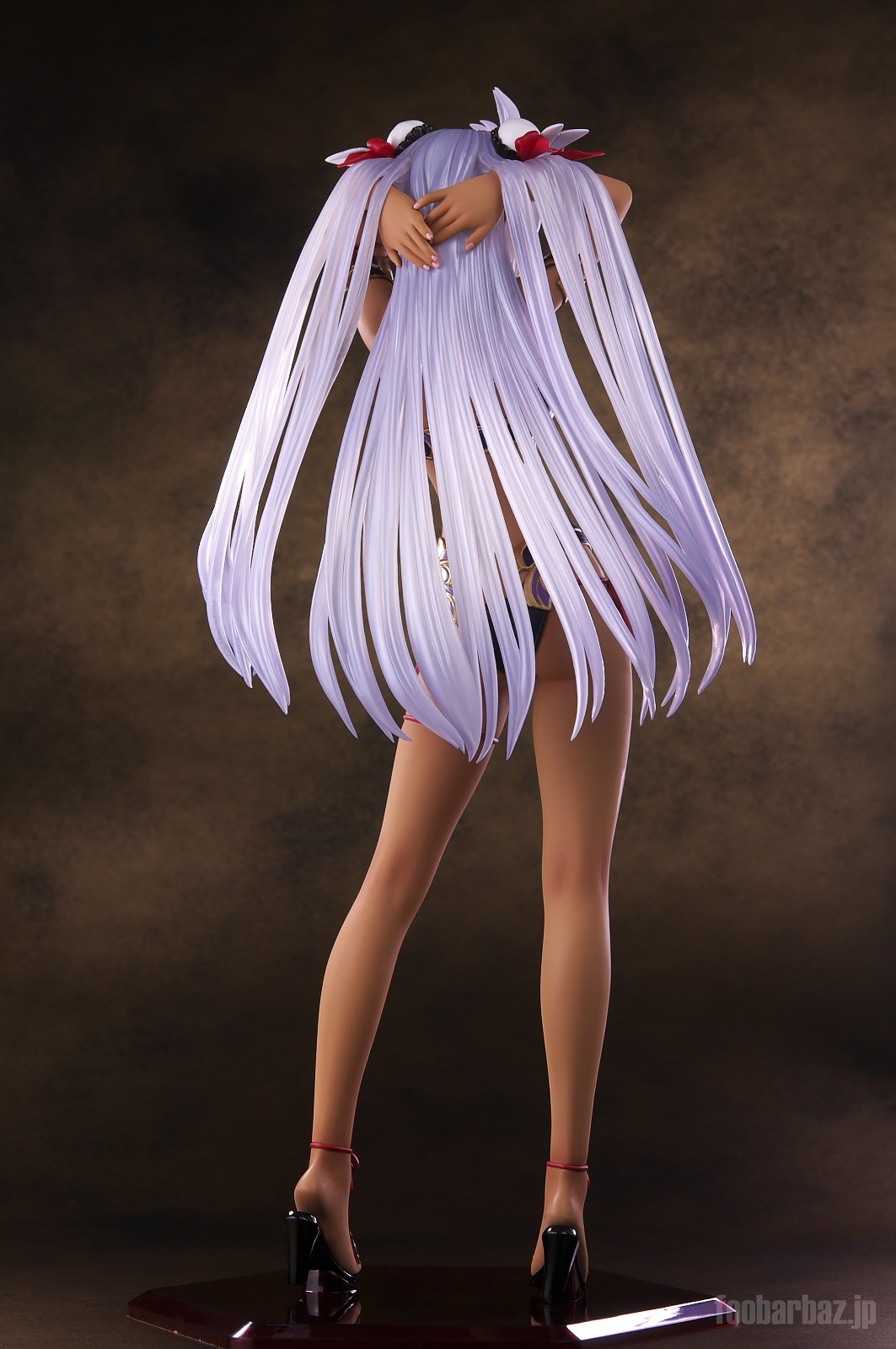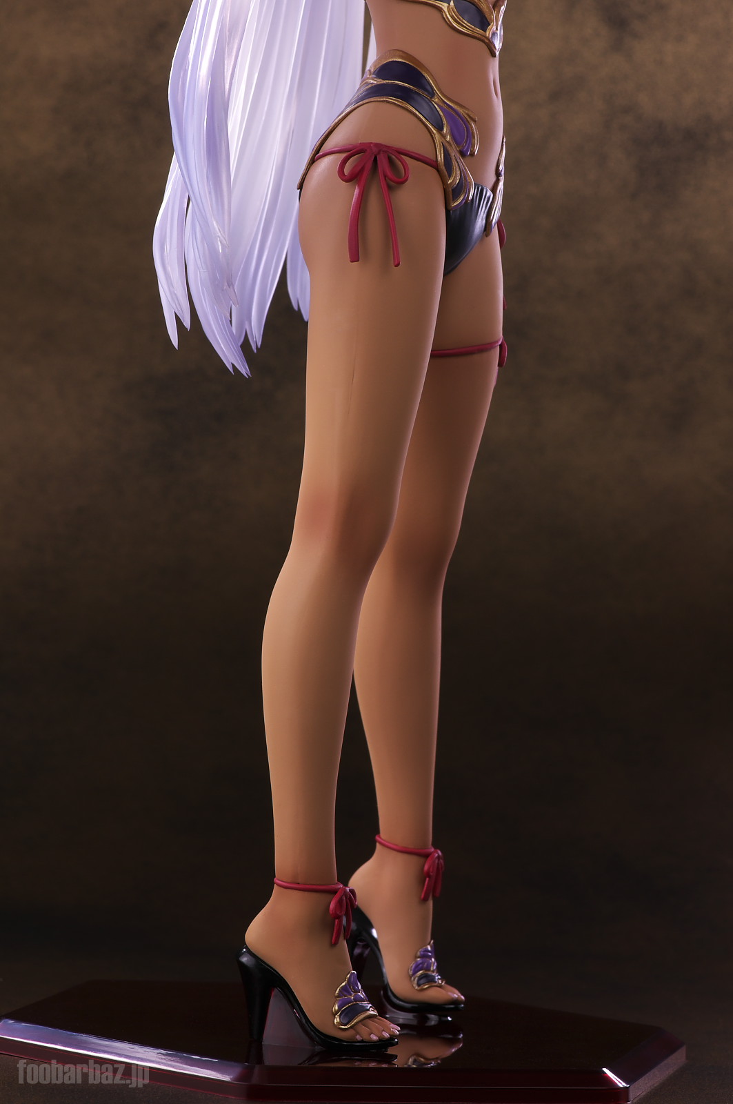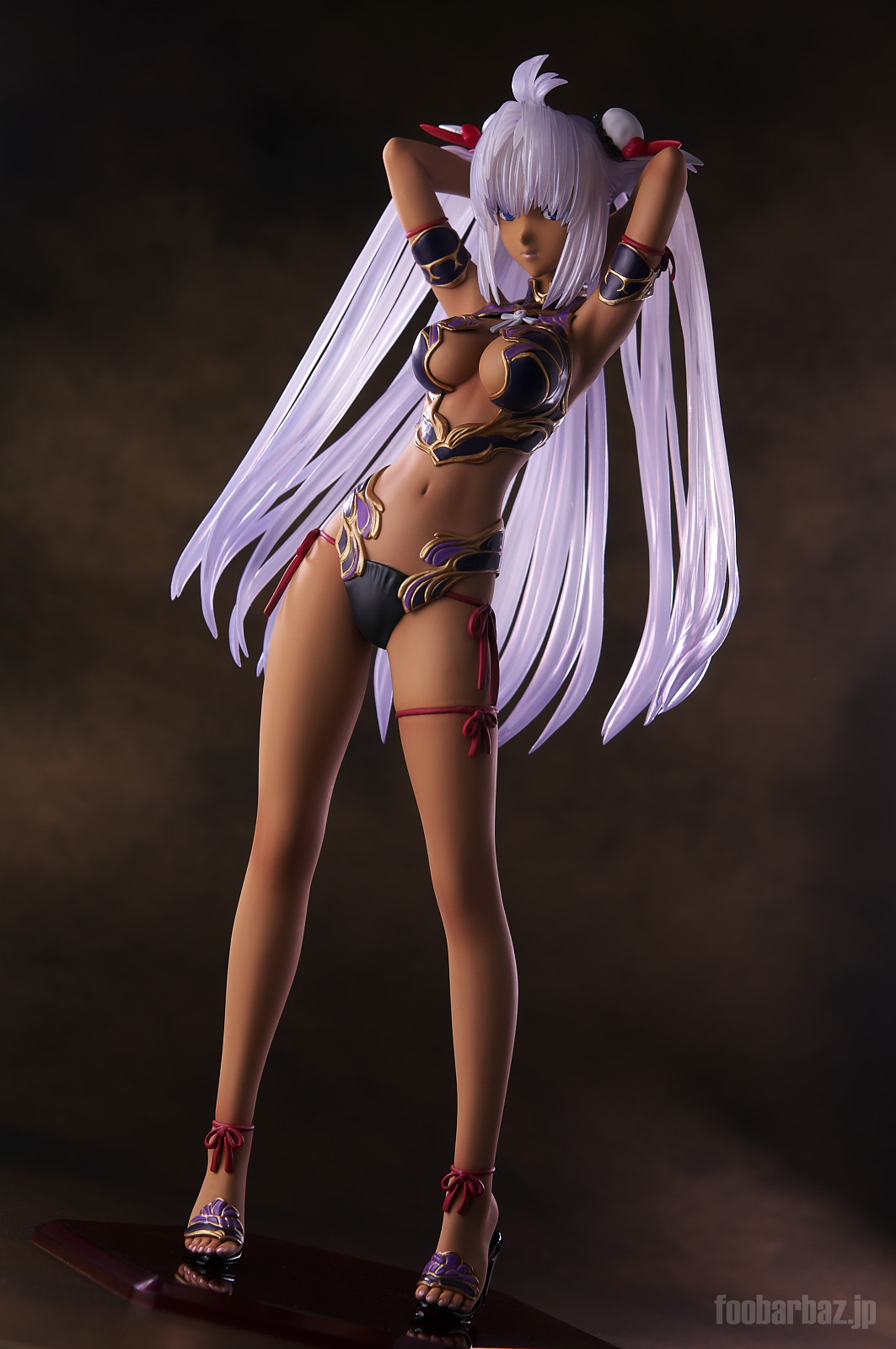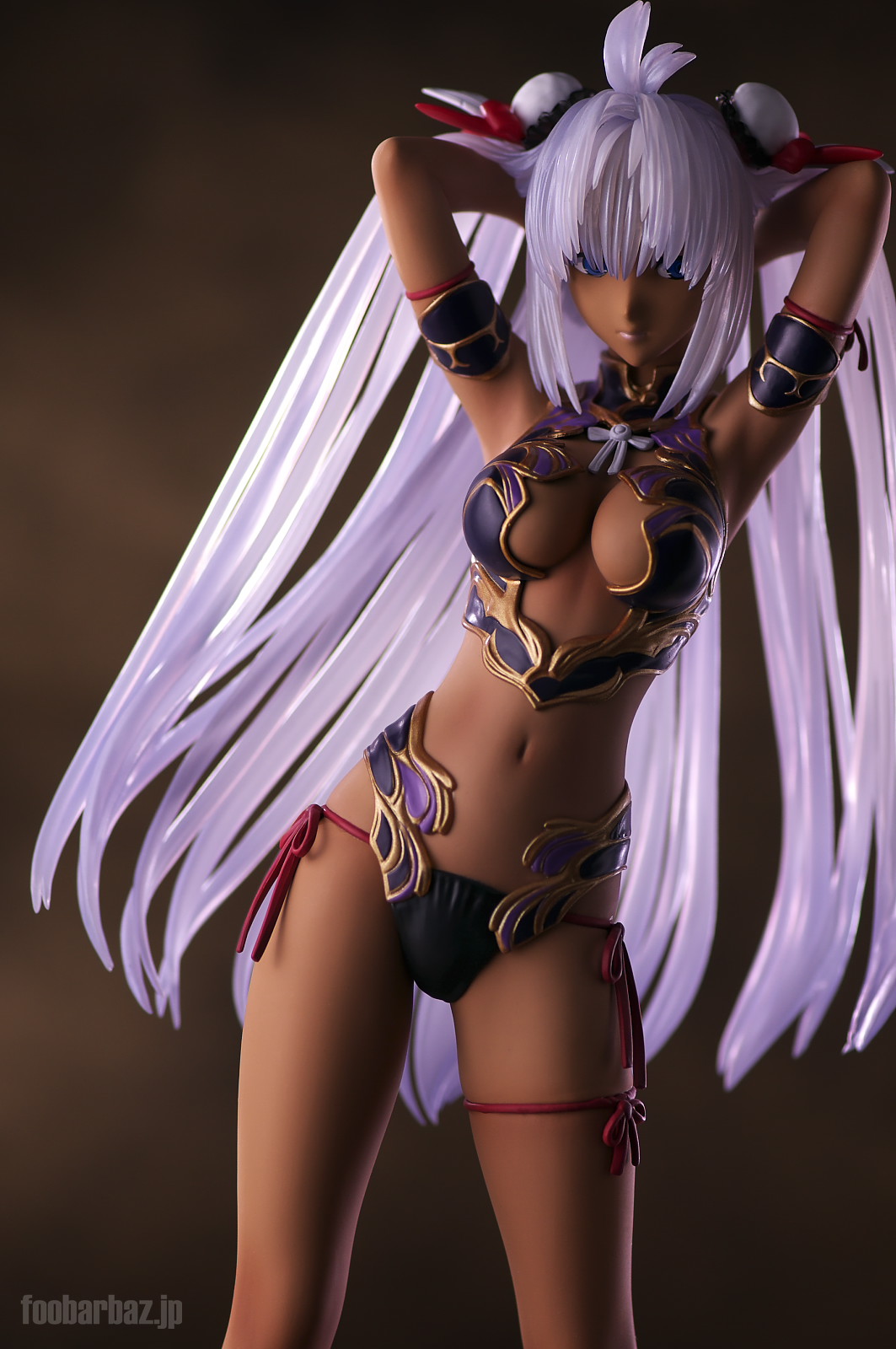 | ファンタジー世界の衣装のような(^^;水着。金の縁取りがゴージャスです。 塗装はやや荒く,飛び散りやムラが多め。 両手で掻き上げられた,ボリュームのある髪の毛はクリア素材。 光を透過して美しく輝きます。 | |
