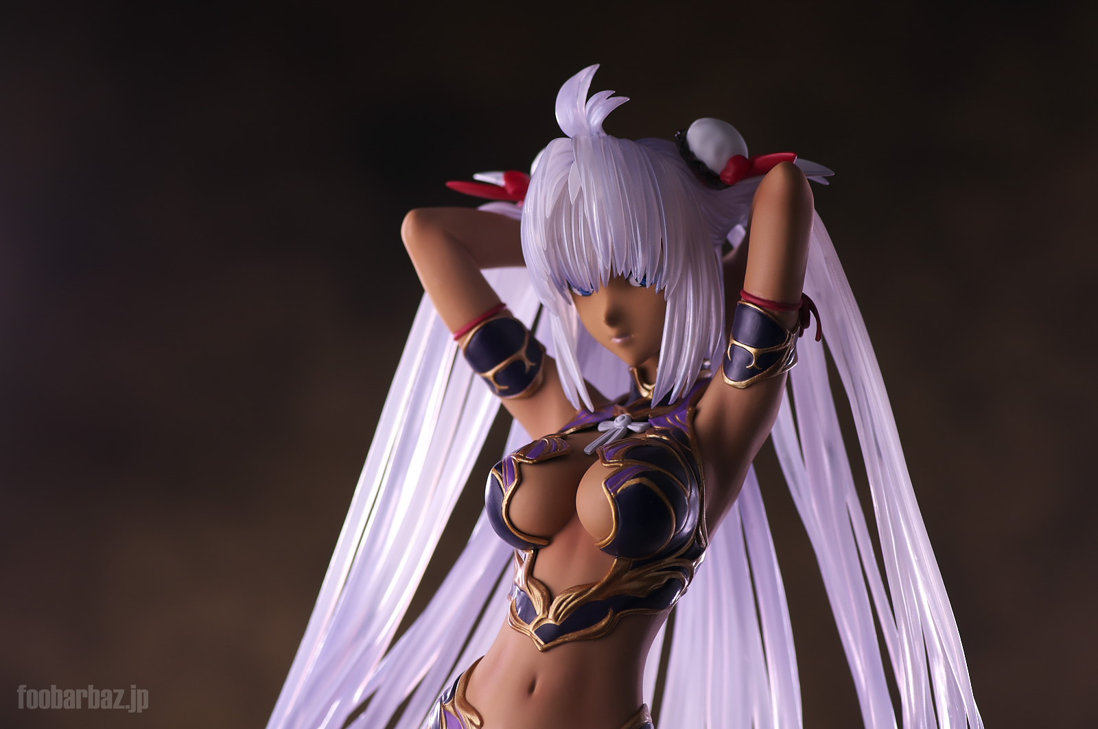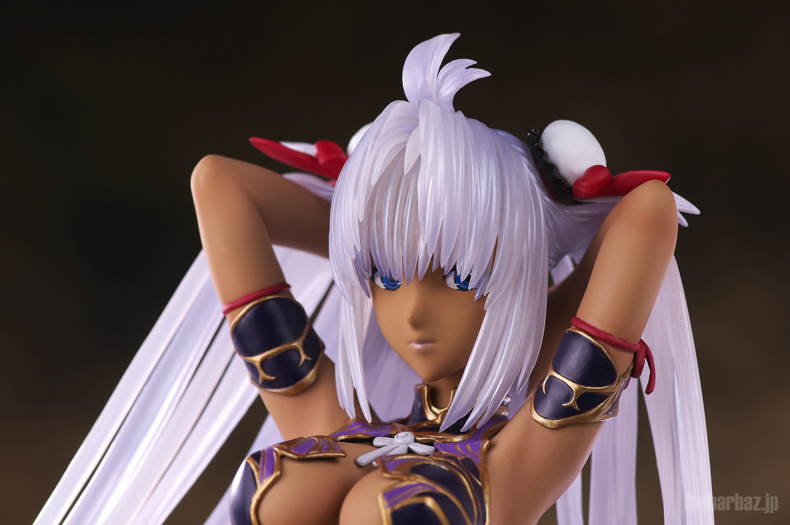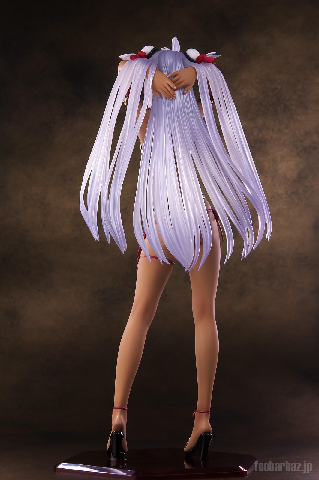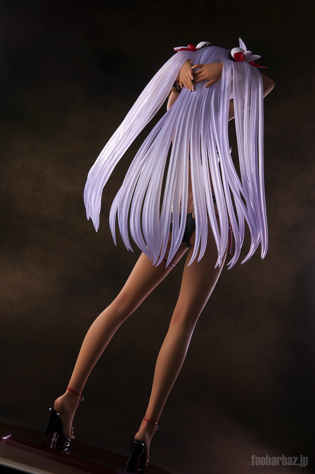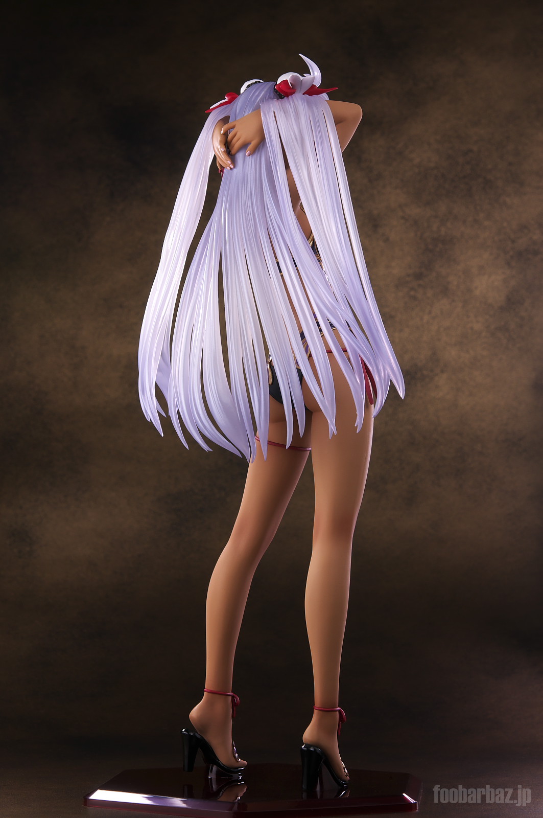 | ファンタジー世界の衣装のような(^^;水着。金の縁取りがゴージャスです。 塗装はやや荒く,飛び散りやムラが多め。 両手で掻き上げられた,ボリュームのある髪の毛はクリア素材。 光を透過して美しく輝きます。 | |
