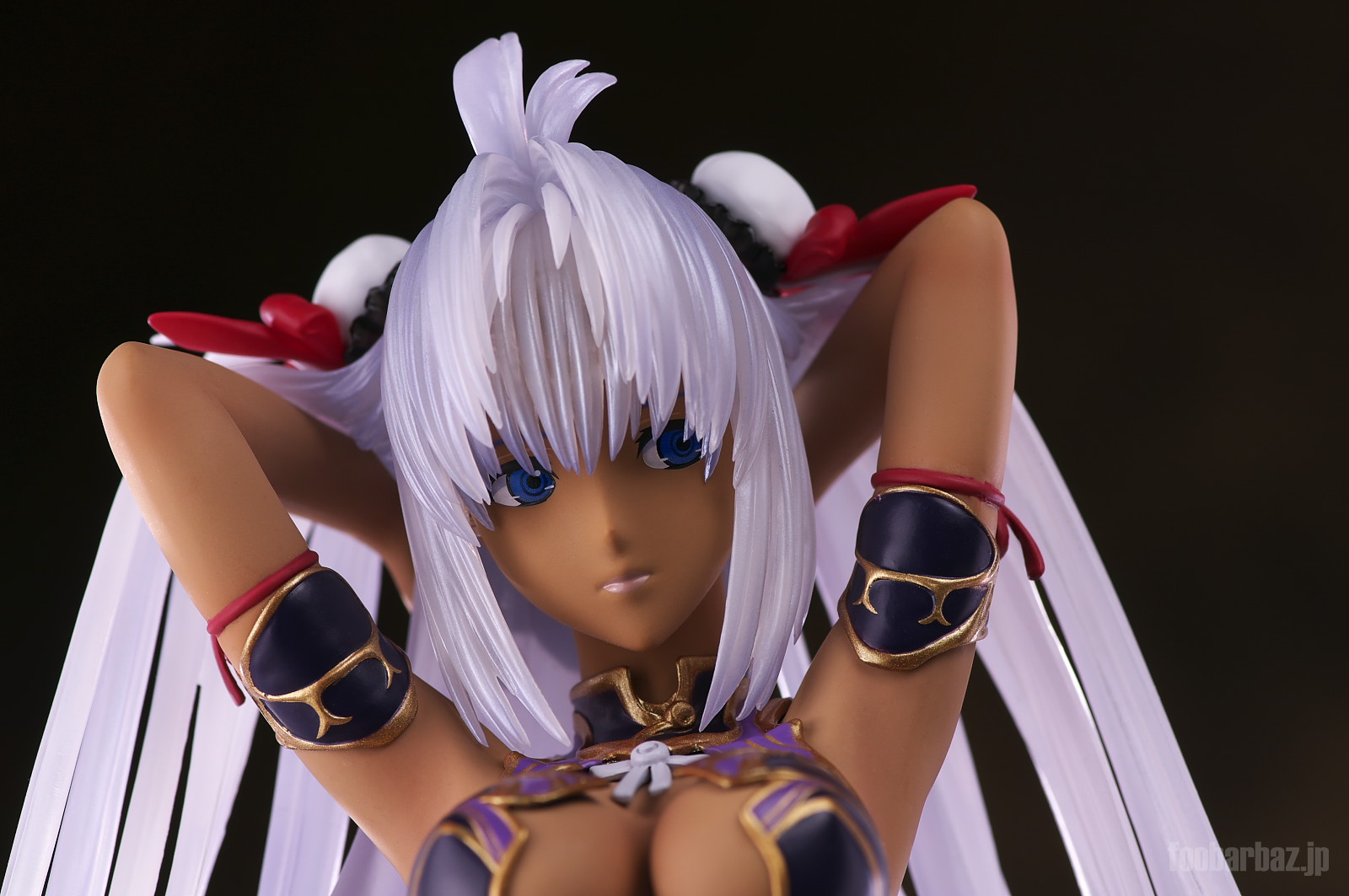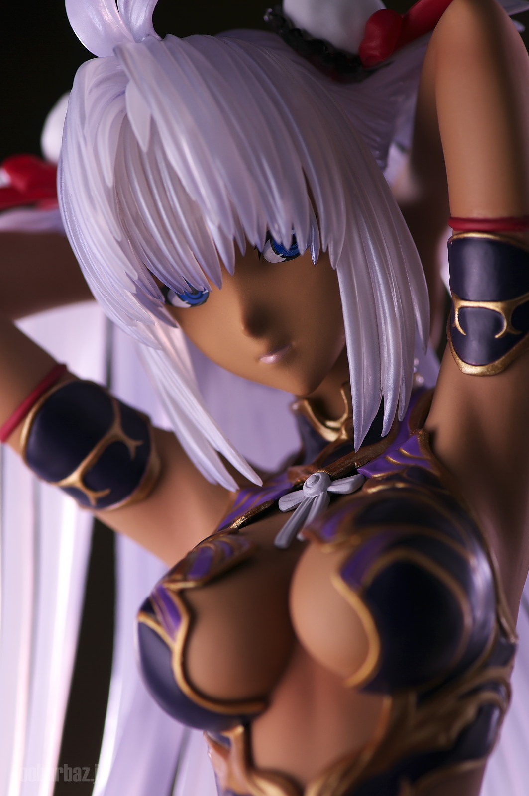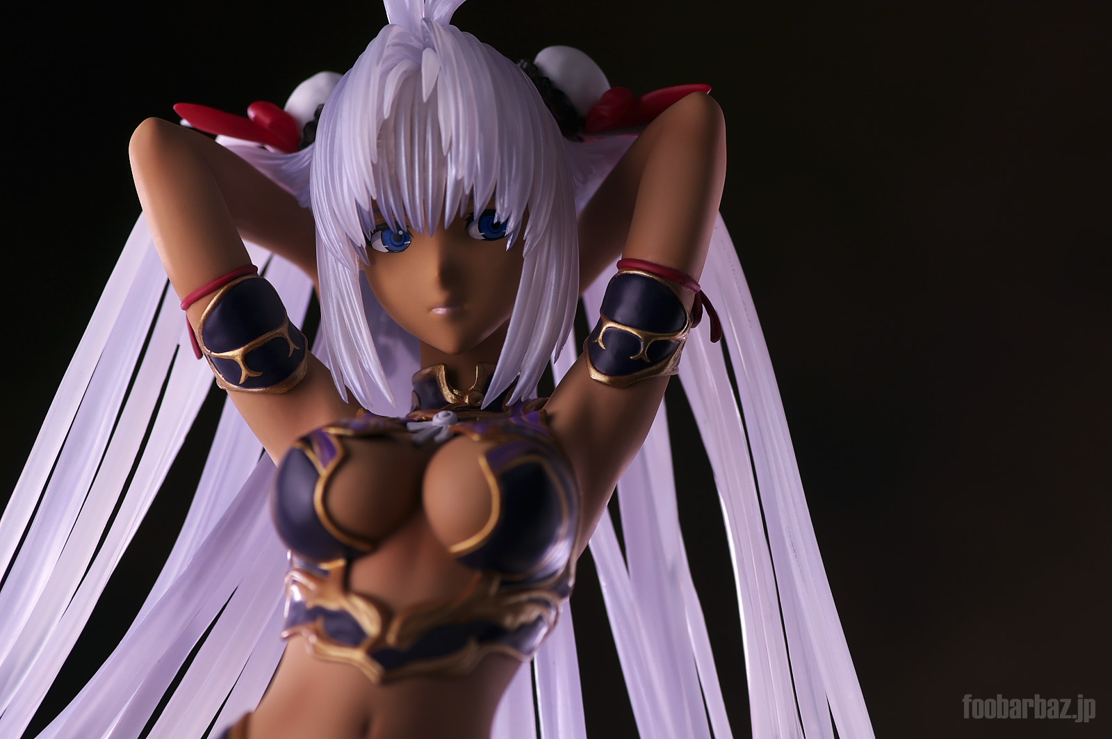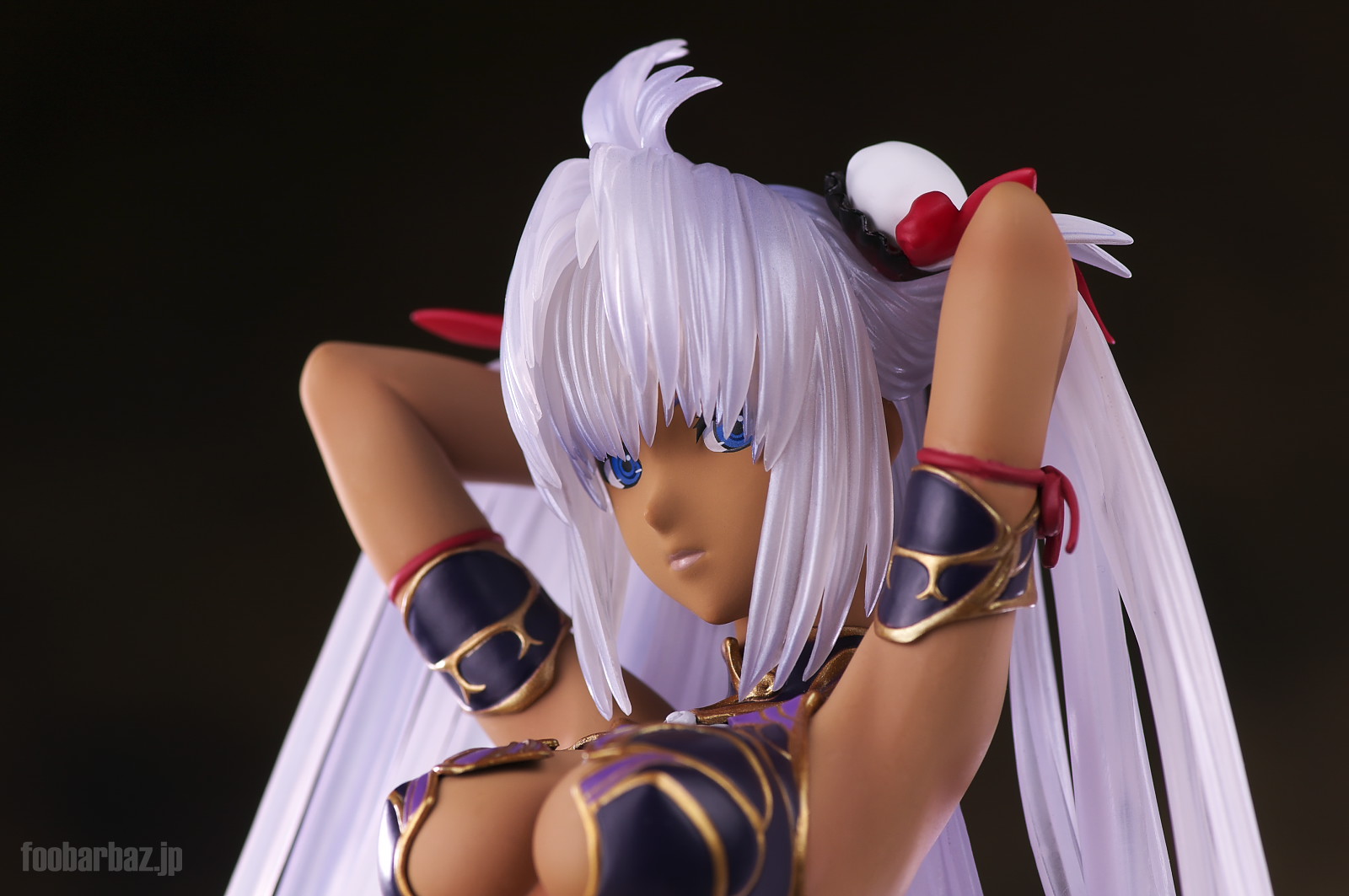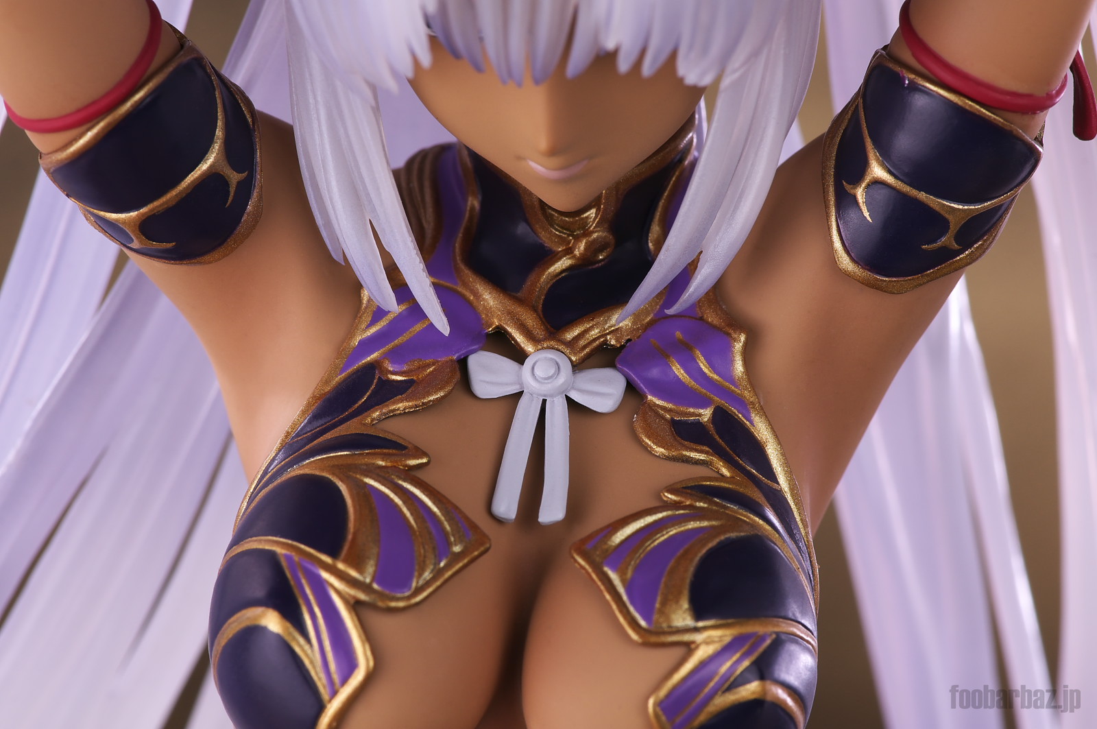 | ファンタジー世界の衣装のような(^^;水着。金の縁取りがゴージャスです。 塗装はやや荒く,飛び散りやムラが多め。 両手で掻き上げられた,ボリュームのある髪の毛はクリア素材。 光を透過して美しく輝きます。 | |