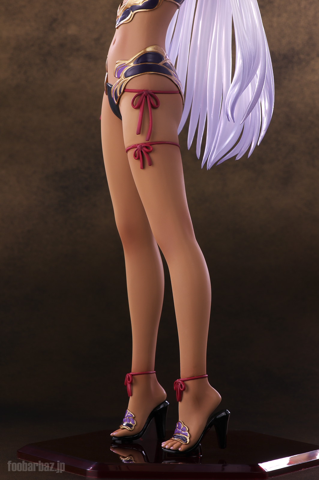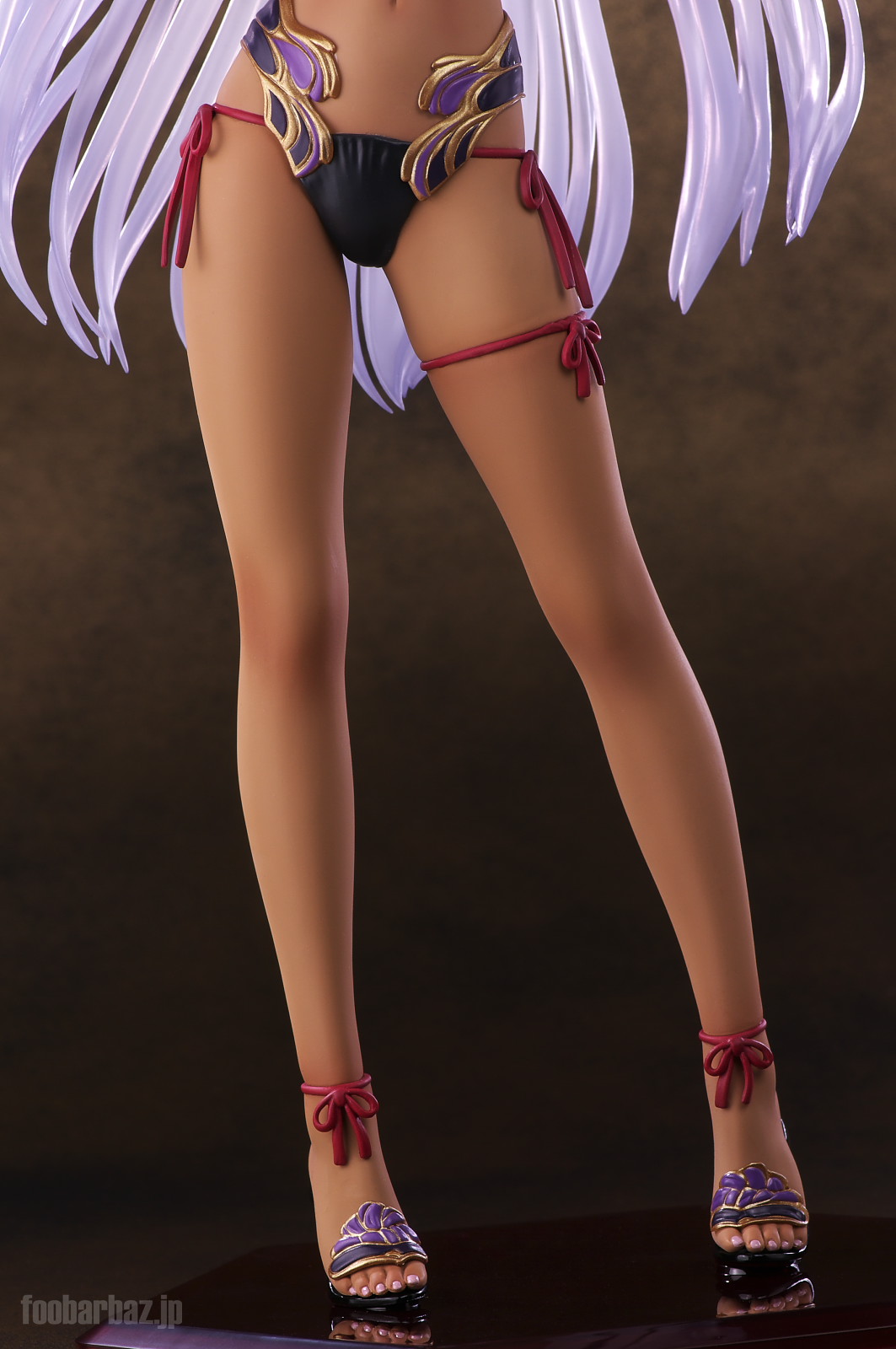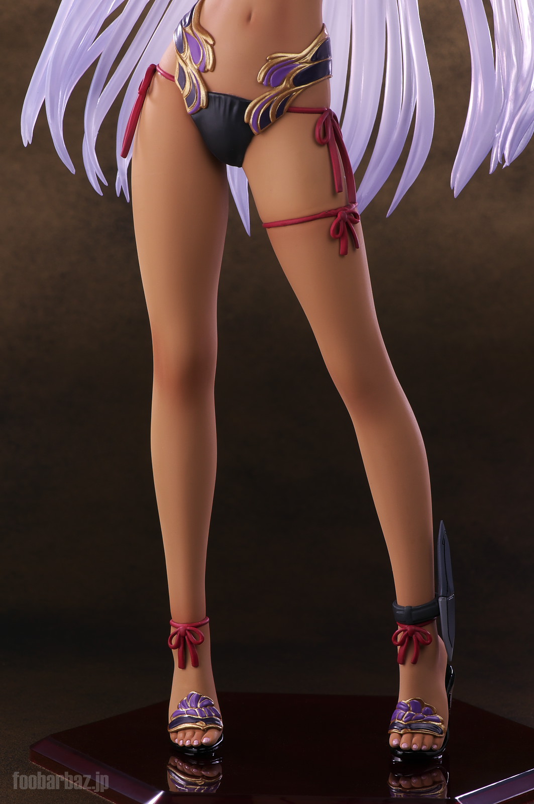 | 左ふとももに縛られた赤のコードが,ふとももの弾力感を強調しています。 サンダル履きの足元は,ペディキュアが施されています。ちょっとかかとを浮かし気味なのがまたいいですな。 | |