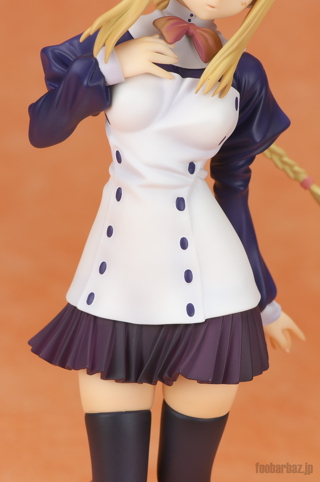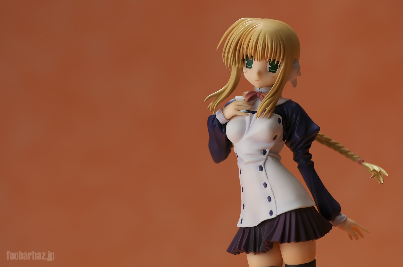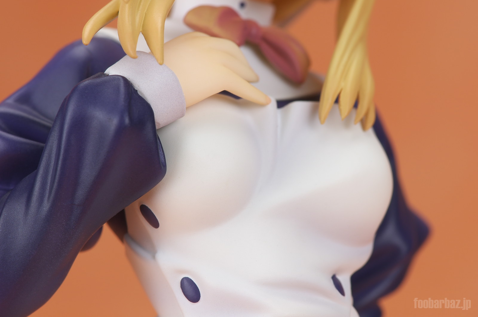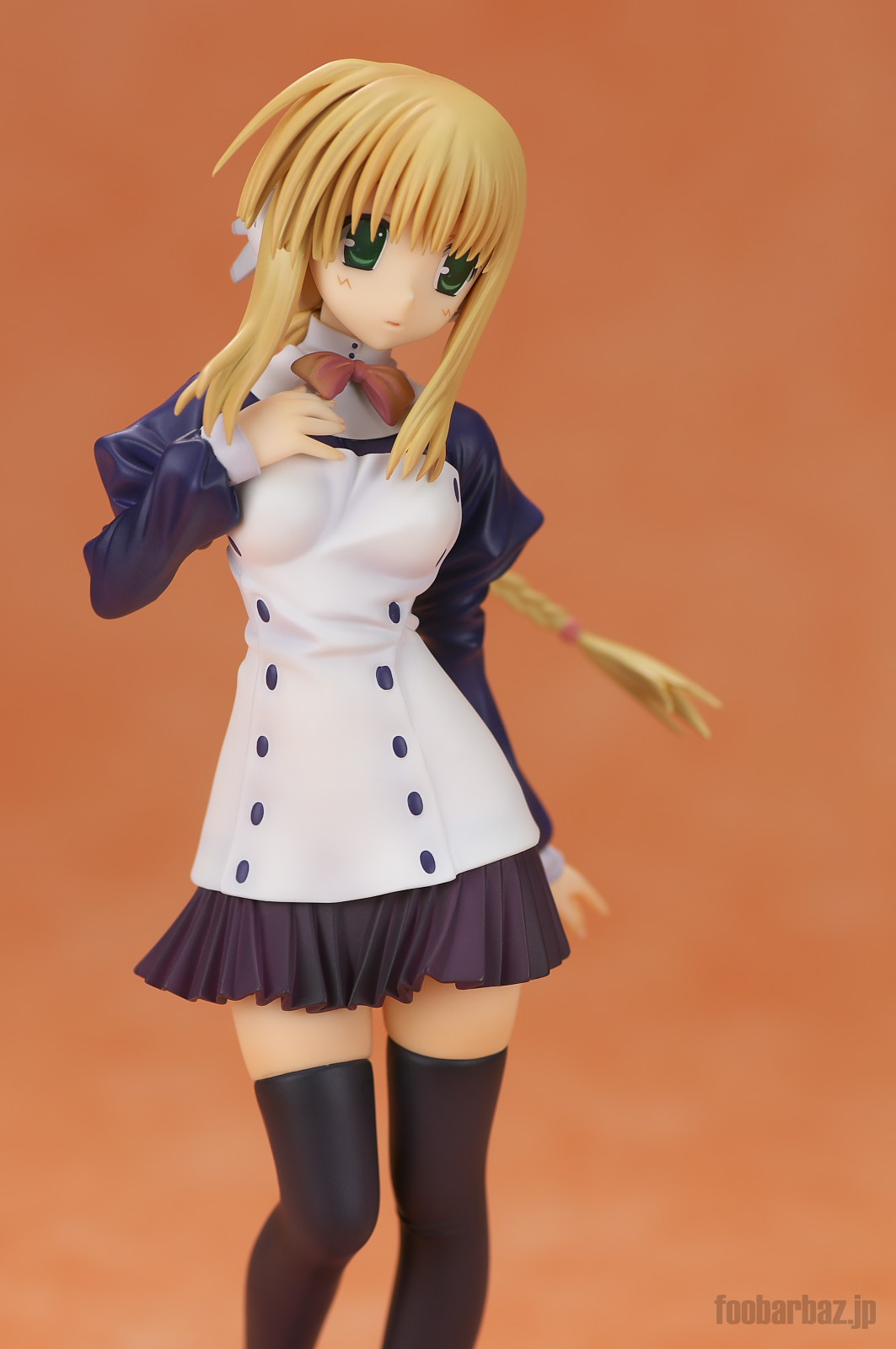 | 白と紺のお召し物。スカート短すぎでしょう(^^; 塗装も丁寧で問題なし。細かな皺造形が,落ち着いた光沢と合わせいい感じです。 | |