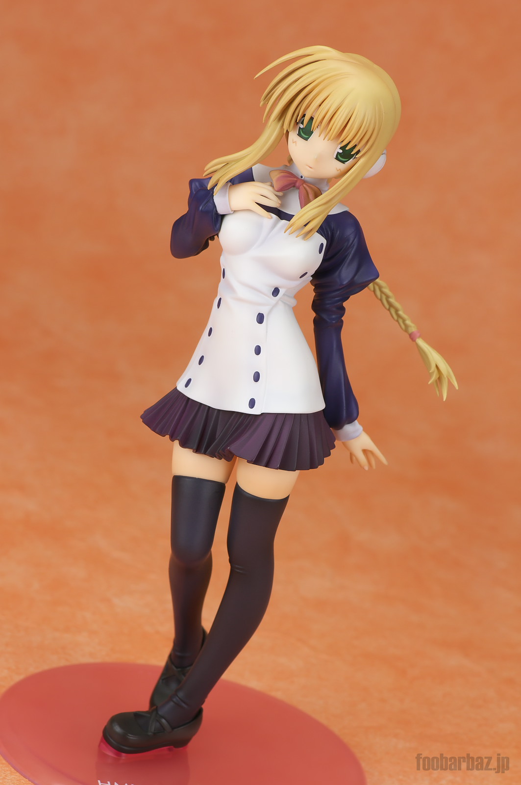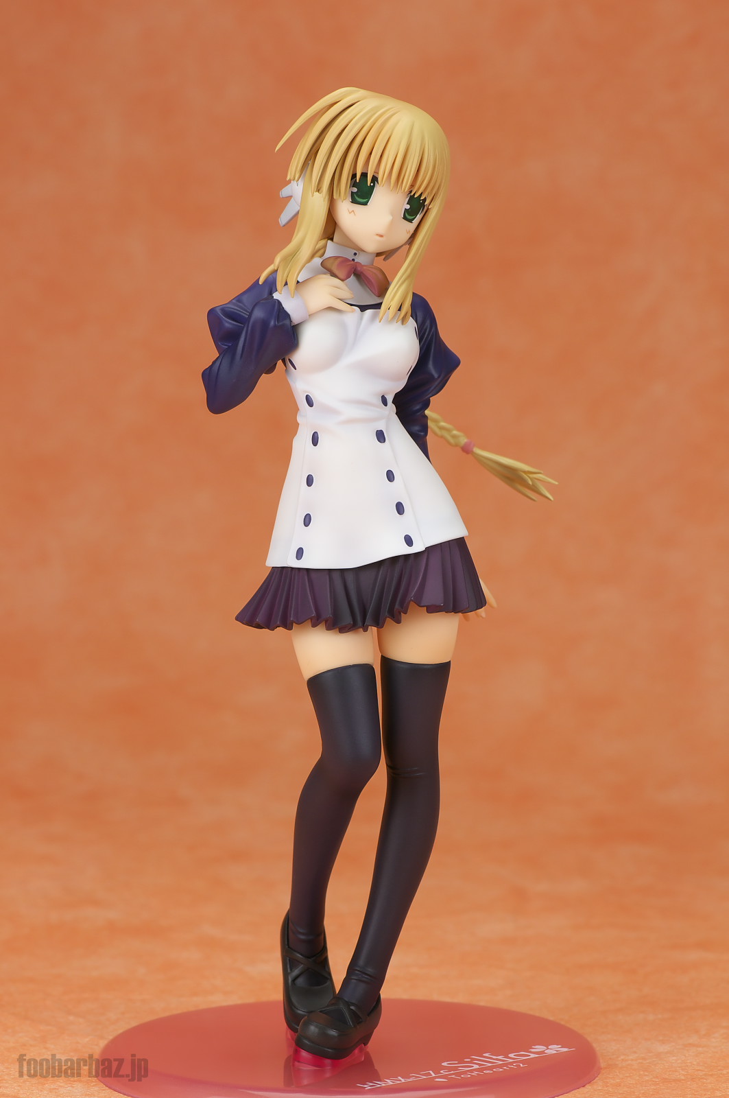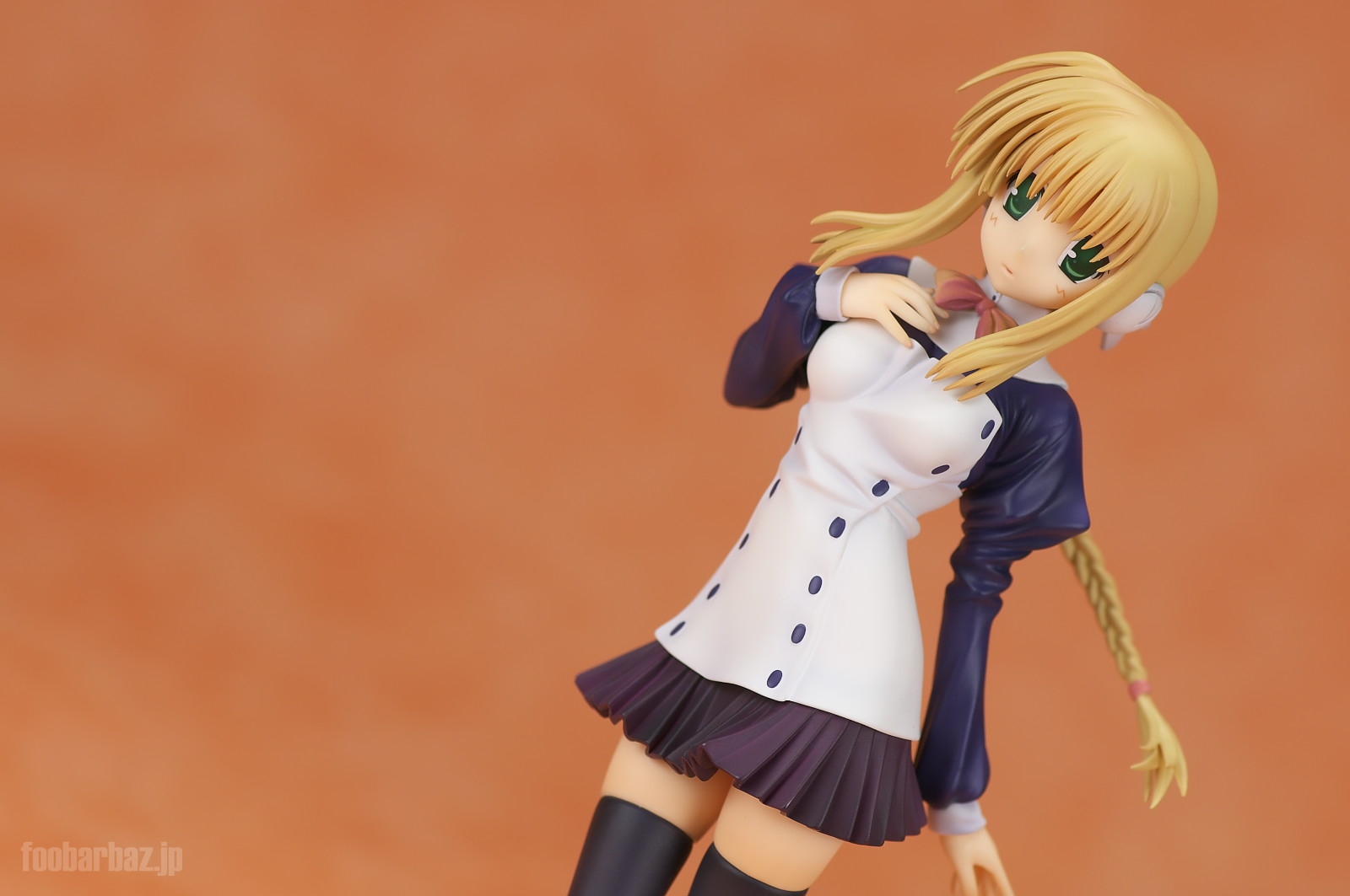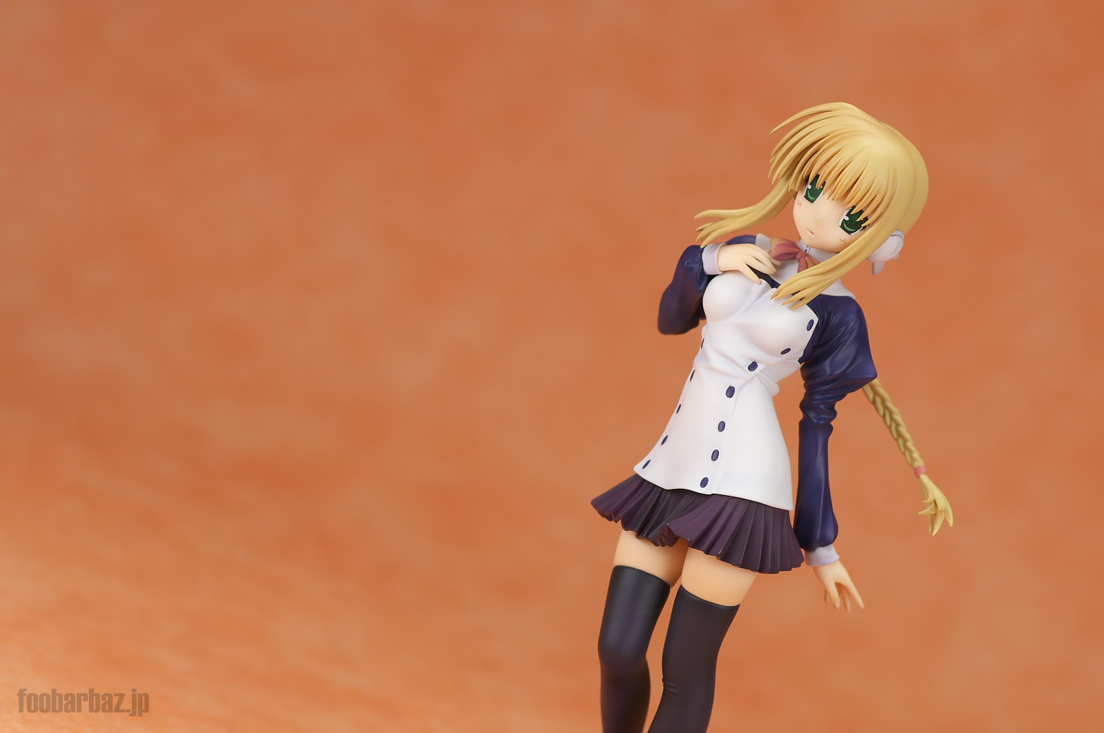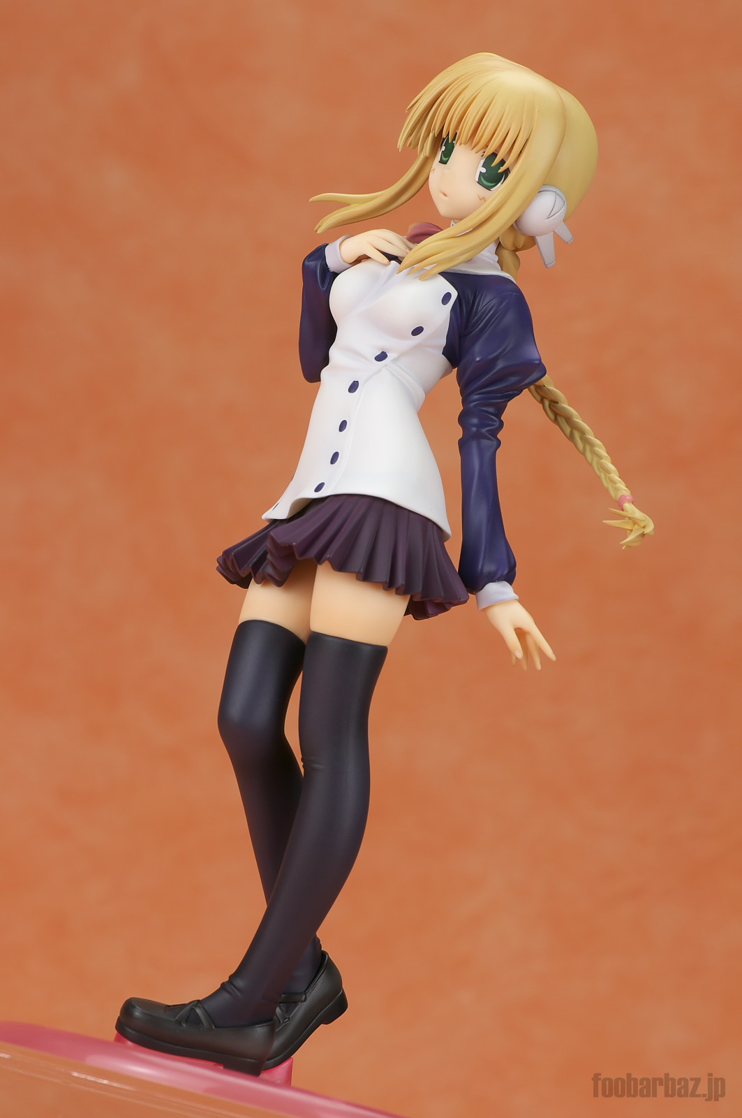 | 白と紺のお召し物。スカート短すぎでしょう(^^; 塗装も丁寧で問題なし。細かな皺造形が,落ち着いた光沢と合わせいい感じです。 | |