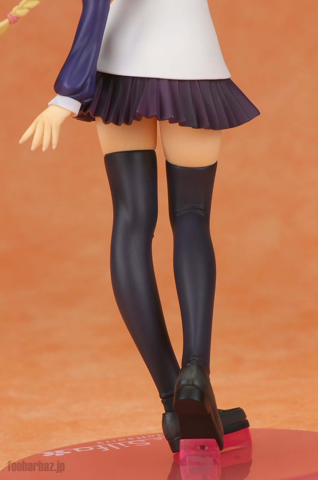 | ほっそりとしたかわいらしいおみ足。個人的に一番の見どころ(^^; ニーソの太ももへの食い込み感とか皺の入り具合とか,内股気味のポーズとか,いろいろたまりません(^^; | |
