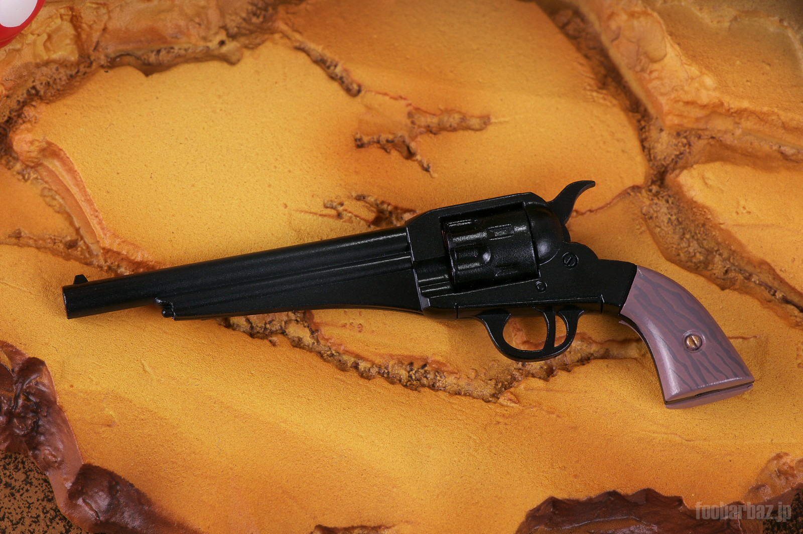 | ホルスターに収まる銃は着脱も可能。 ホルスターの塗装は見事ですが,銃はちょっと安っぽく感じるかも。 |
