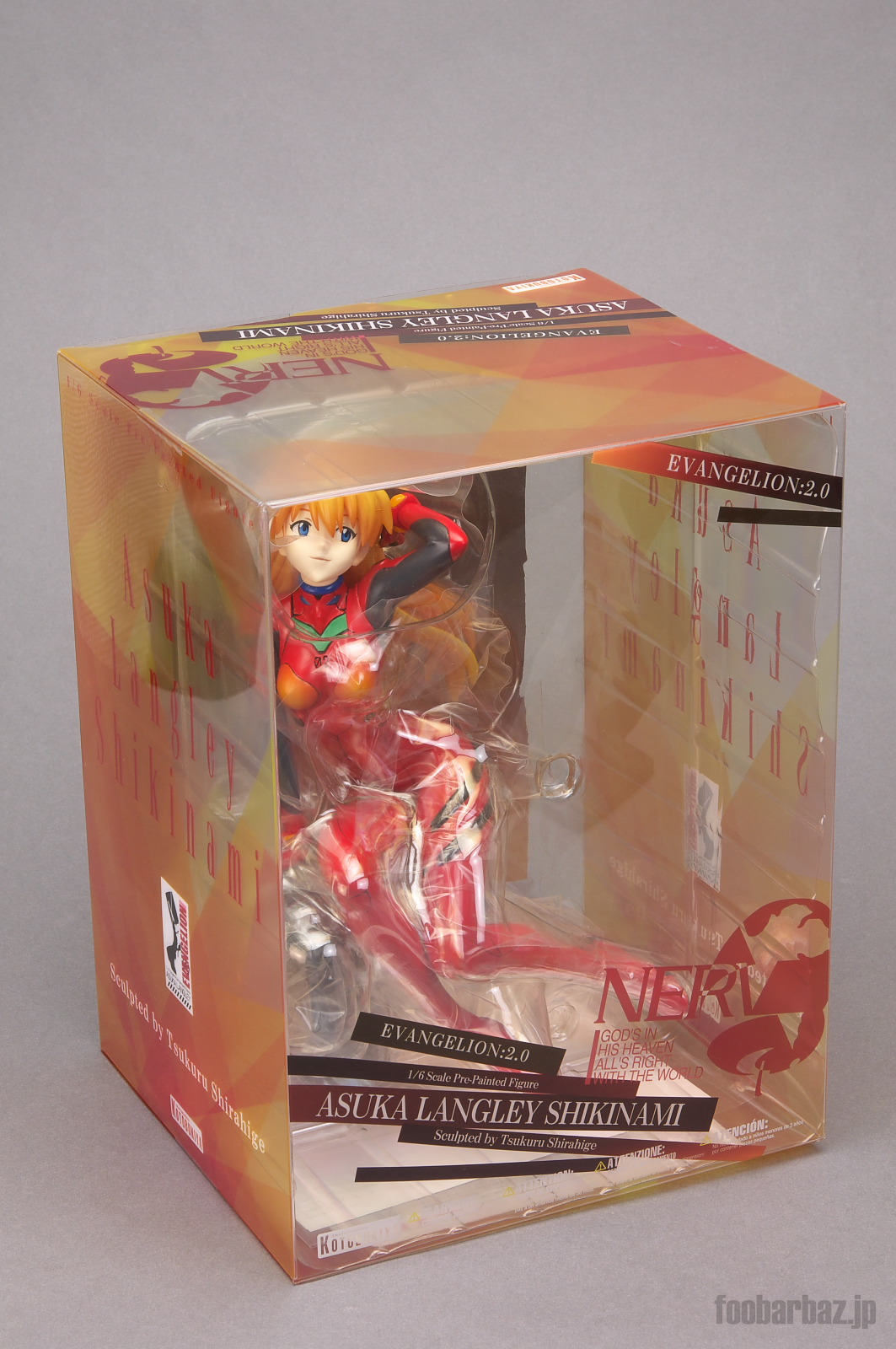 | パッケージ。約18cm(W)×24cm(H)×16cm(D)。 綾波レイ 同様の,前面クリア素材のしゃれたパッケージ。 | |