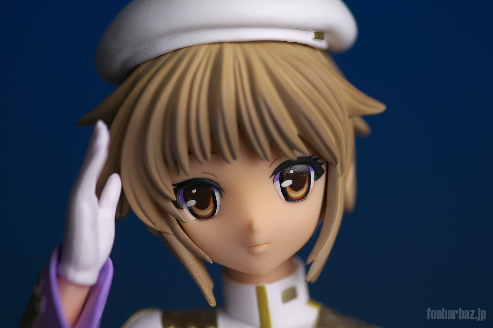 | 長門らしい,クールというよりは無機質な表情。オレンジのルージュが大人っぽいです。 ただ,結構角度限定です(^^; 首の部分はボールジョイントで,ある程度角度調節が可能。 帽子は取り外し可能ですが,やはりこの姿なら帽子ありのほうがしっくり来ます。 | |