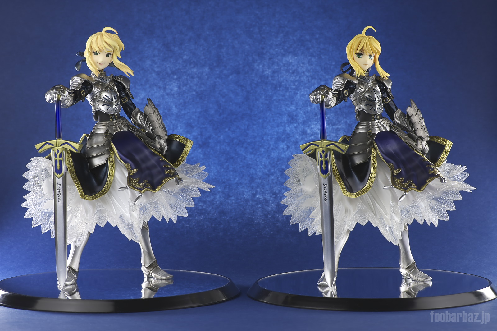 | 2タイプ並べて。台座がデカイよ(^^; 躍動感あふれる戸田セイバーに,クールな倉本セイバーといったところでしょうか。 |