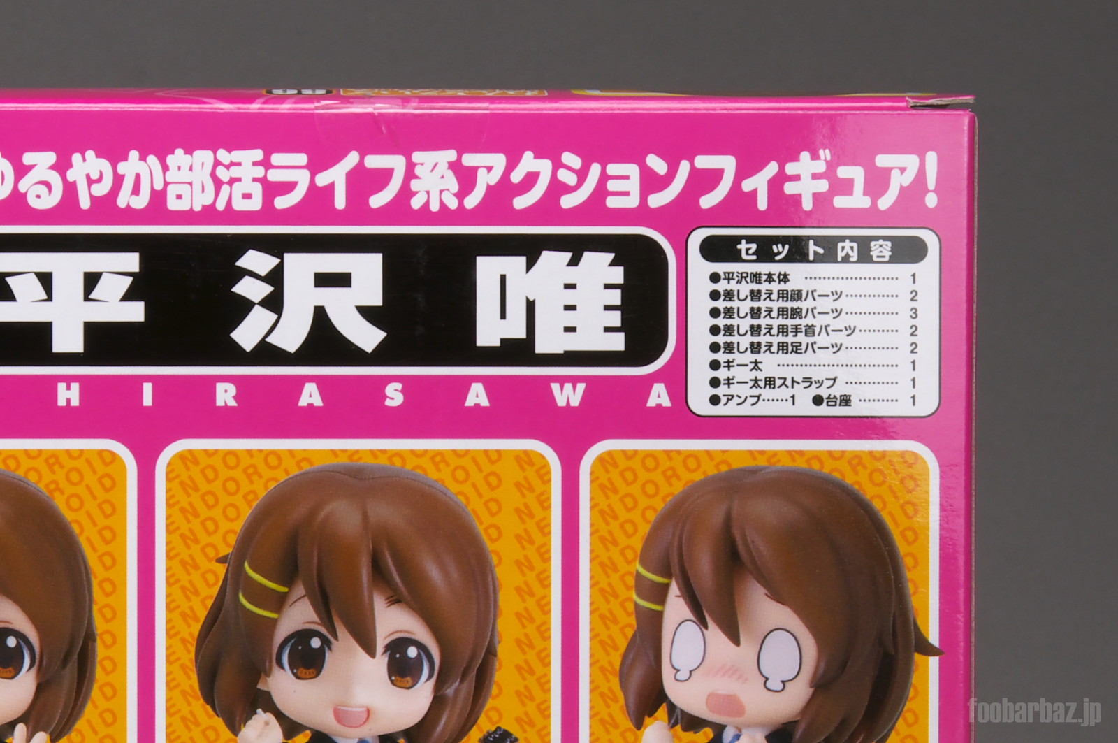 | パッケ裏面のセット内容には,ギターではなくギー太と書かれています(^^; 澪はただのベースだったのに(^^; デザイナさんのこだわりです。 |