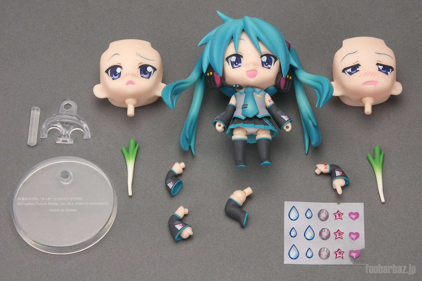 | 付属オプション類。汗や怒りマークのシールが付属しているのが新しいところ。 もちろんネギも2本付いています(^^; |