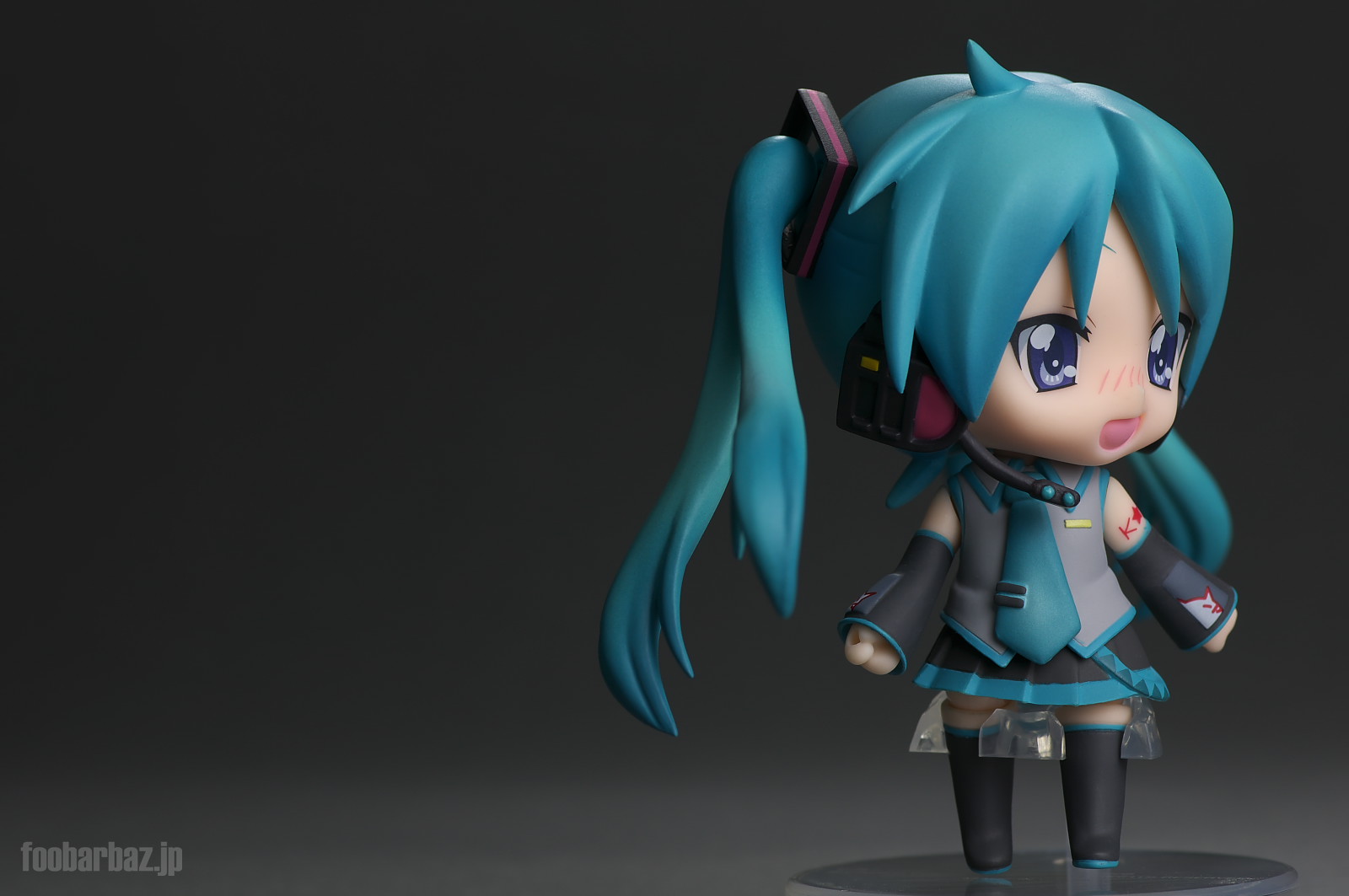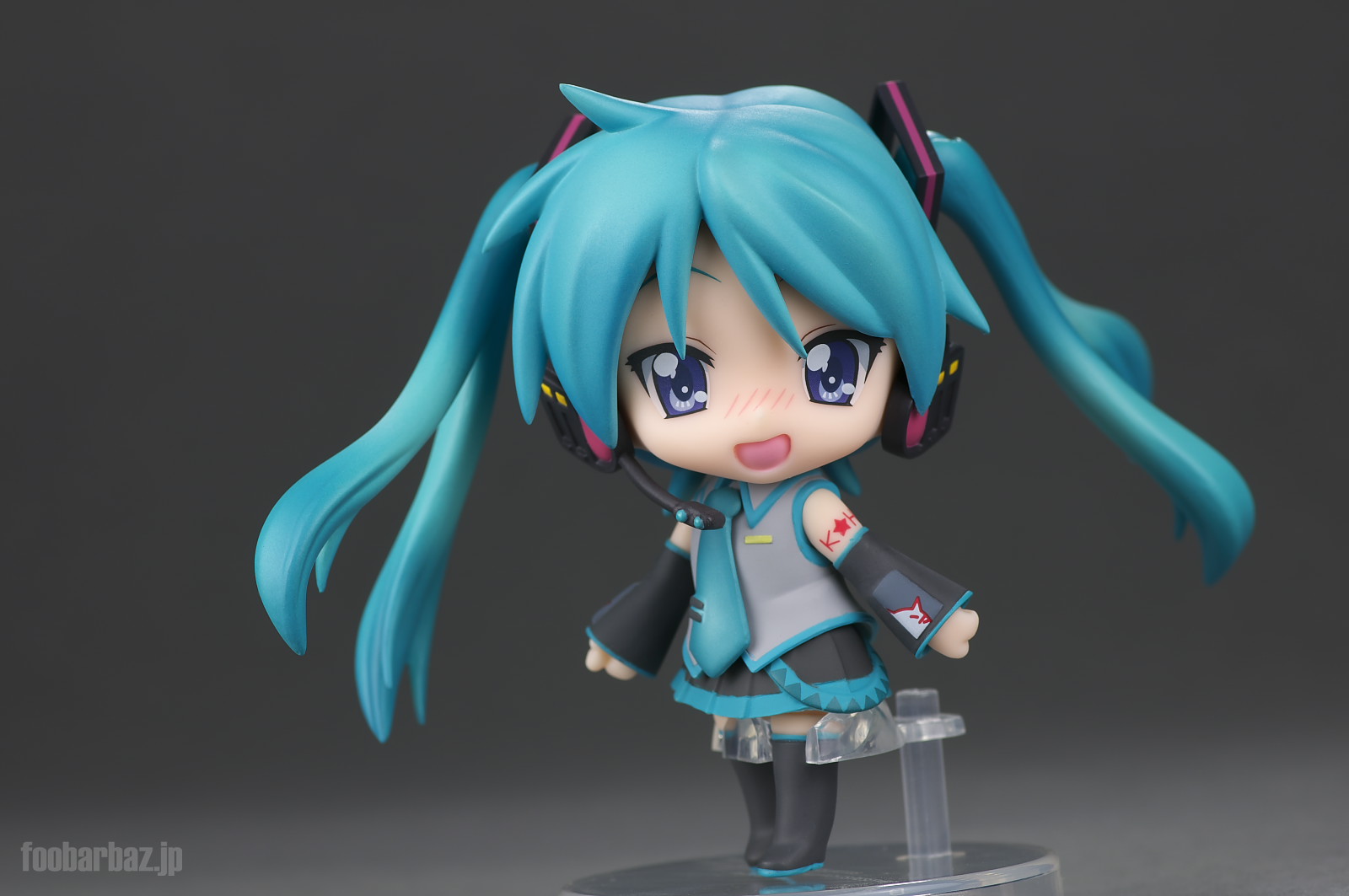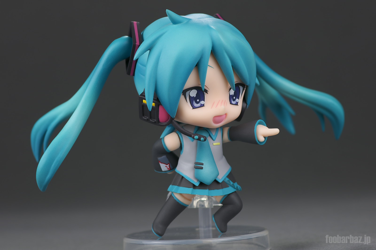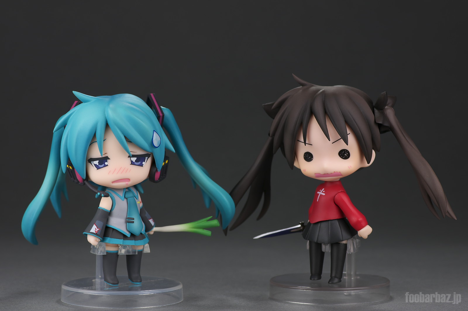 と並べて。どちらもかわゆいですな~(^^; 細部造形や色合いはだいぶ異なりますね。 特にお顔の色は,かがミクのほうがだいぶ色白です。 |
