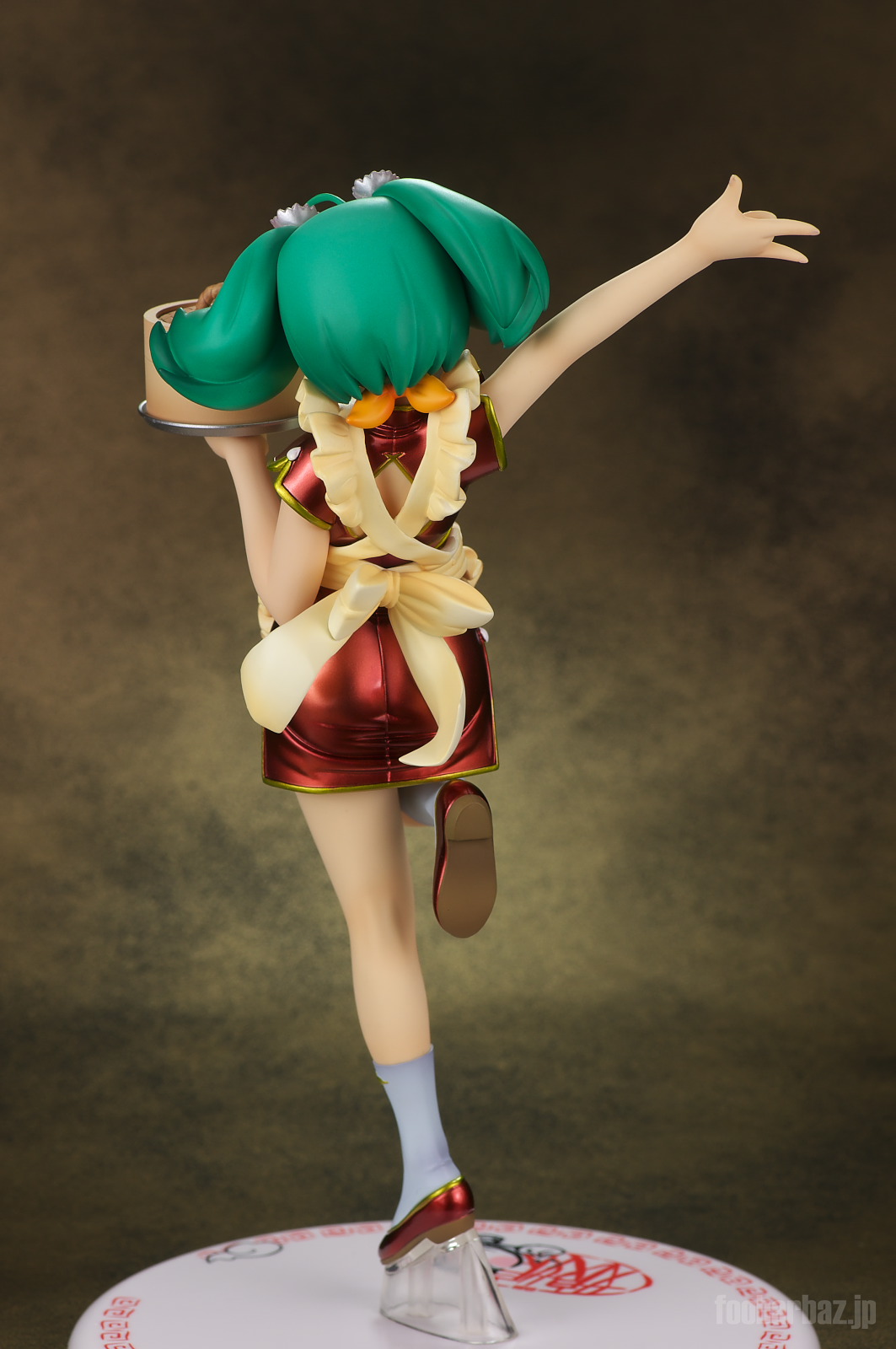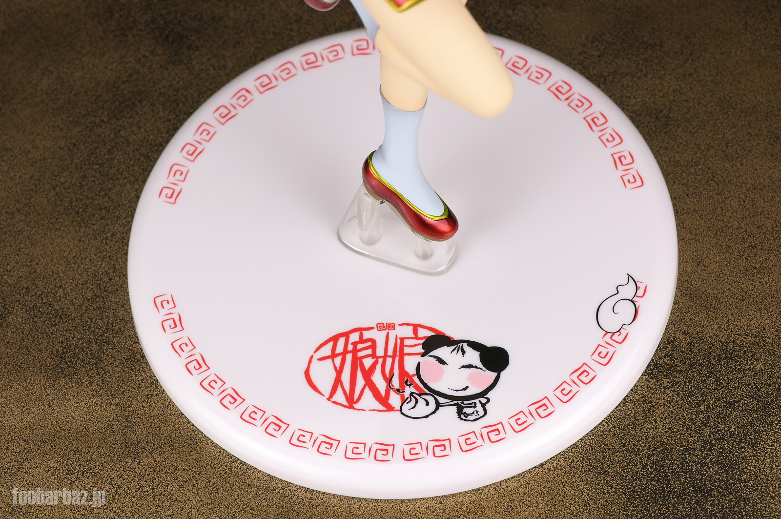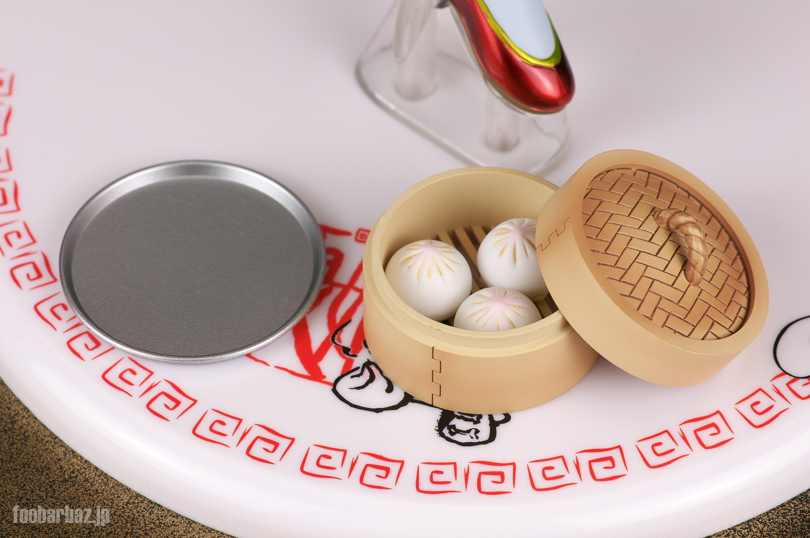 | 台座は白の円形で,娘娘飯店のロゴ入り。 直径13.5cmとかなりの大きさです。もう少しコンパクトにして欲しかった・・・。 |