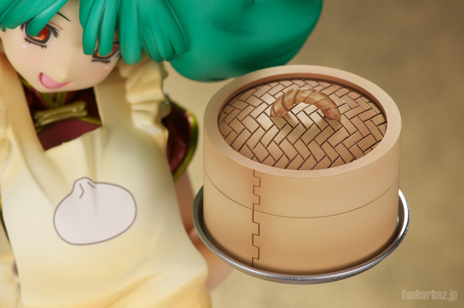 | 左手にはお盆と蒸籠。本物と見まごうような見事な出来映え。 |