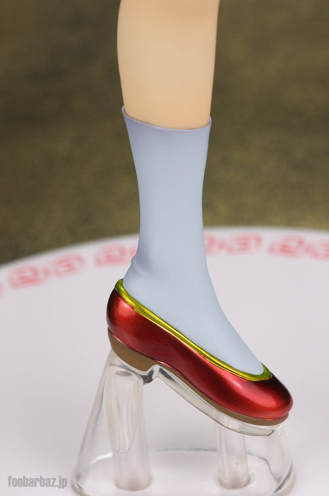 | 足元は白のワンポイントソックスに,服と同色のチャイナシューズ。 こちらもよくできています。 |
