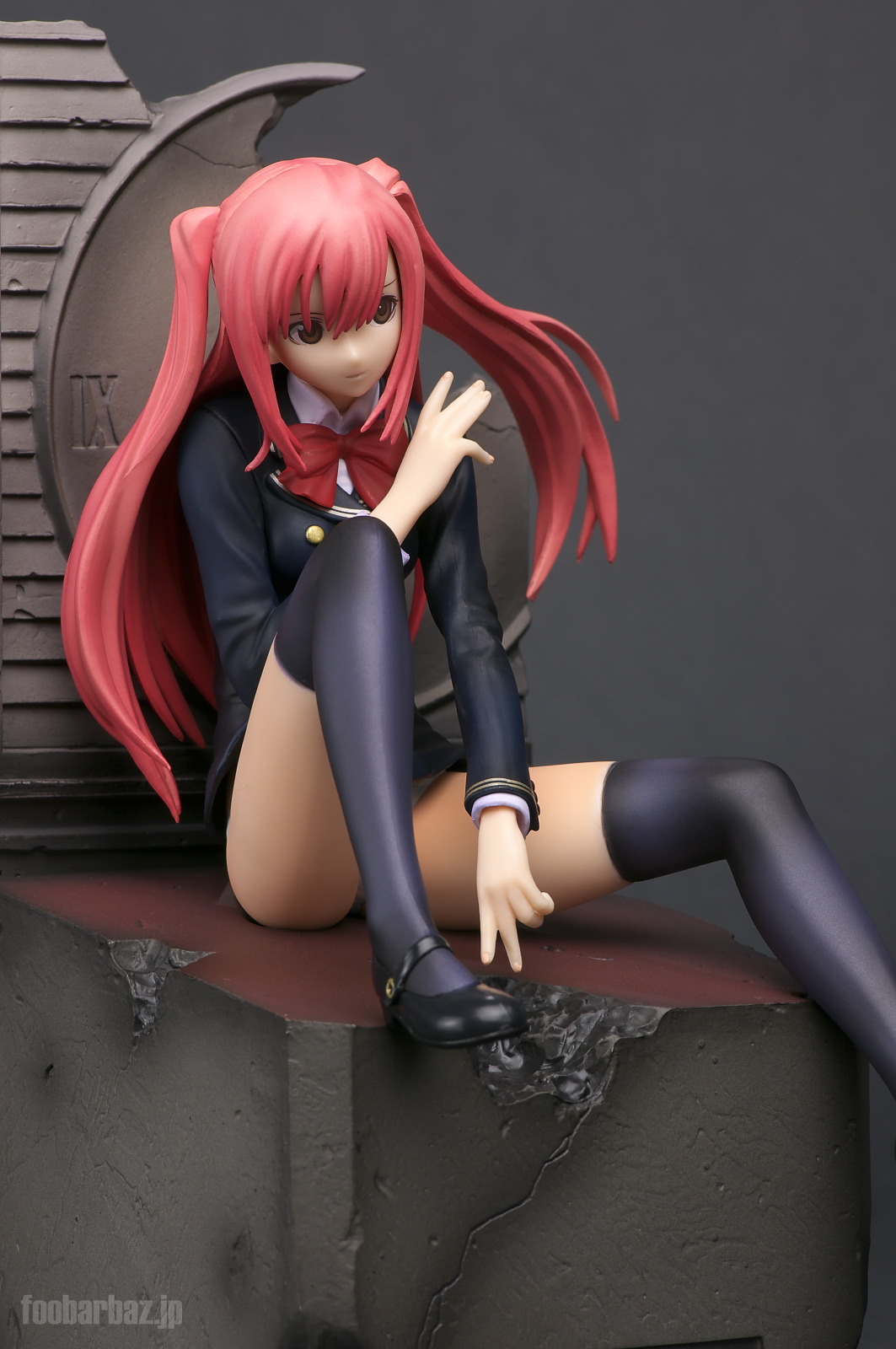 | 6方向。時計台を模した台座に座り込んだポーズが色っぽいですな~。 ただ,デコマスとはかなりお顔の角度や右手の位置が異なる印象。 今回の撮影では,首の部分をヒートガンで暖め,角度を若干修正してあります。 | |