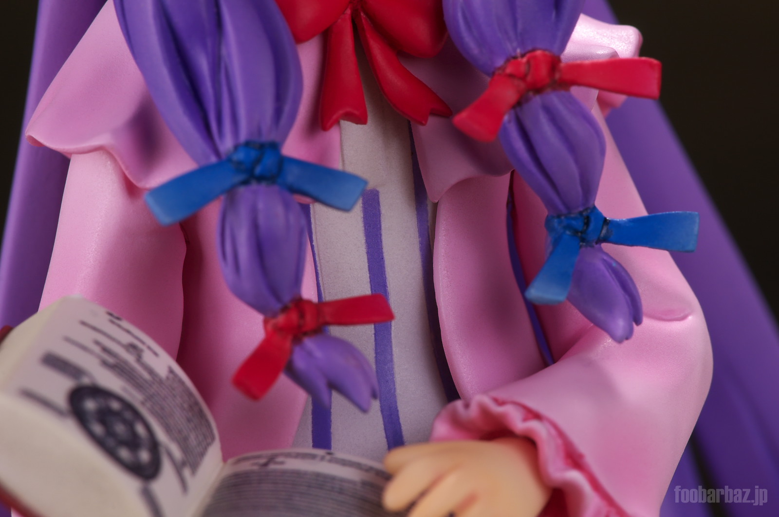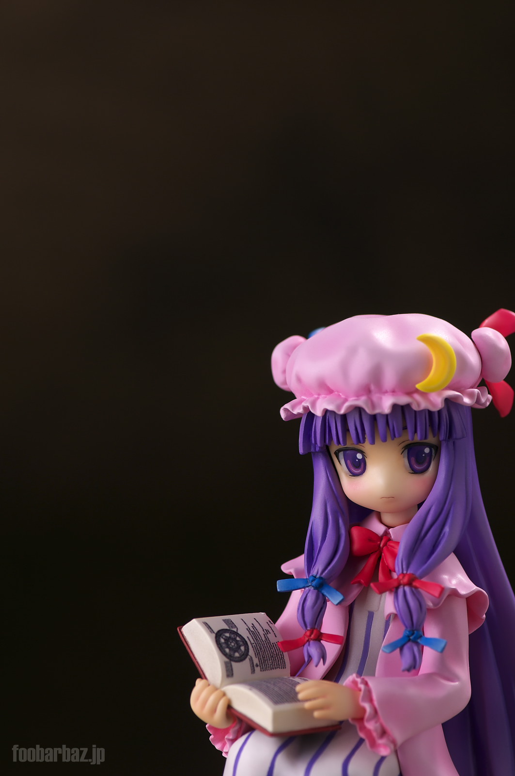 | おなじみのシマシマの衣装。ナイトガウンですかね。 東方キャラの中でも背の低い部類のパチェさん。座りポーズでいよいよ小さく見えます(^^; 腰まで届くストレートの髪の毛もきれいですね。 | |