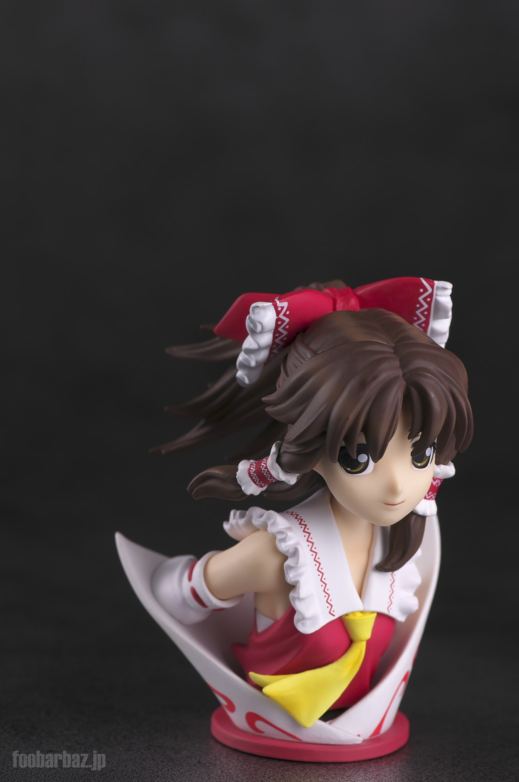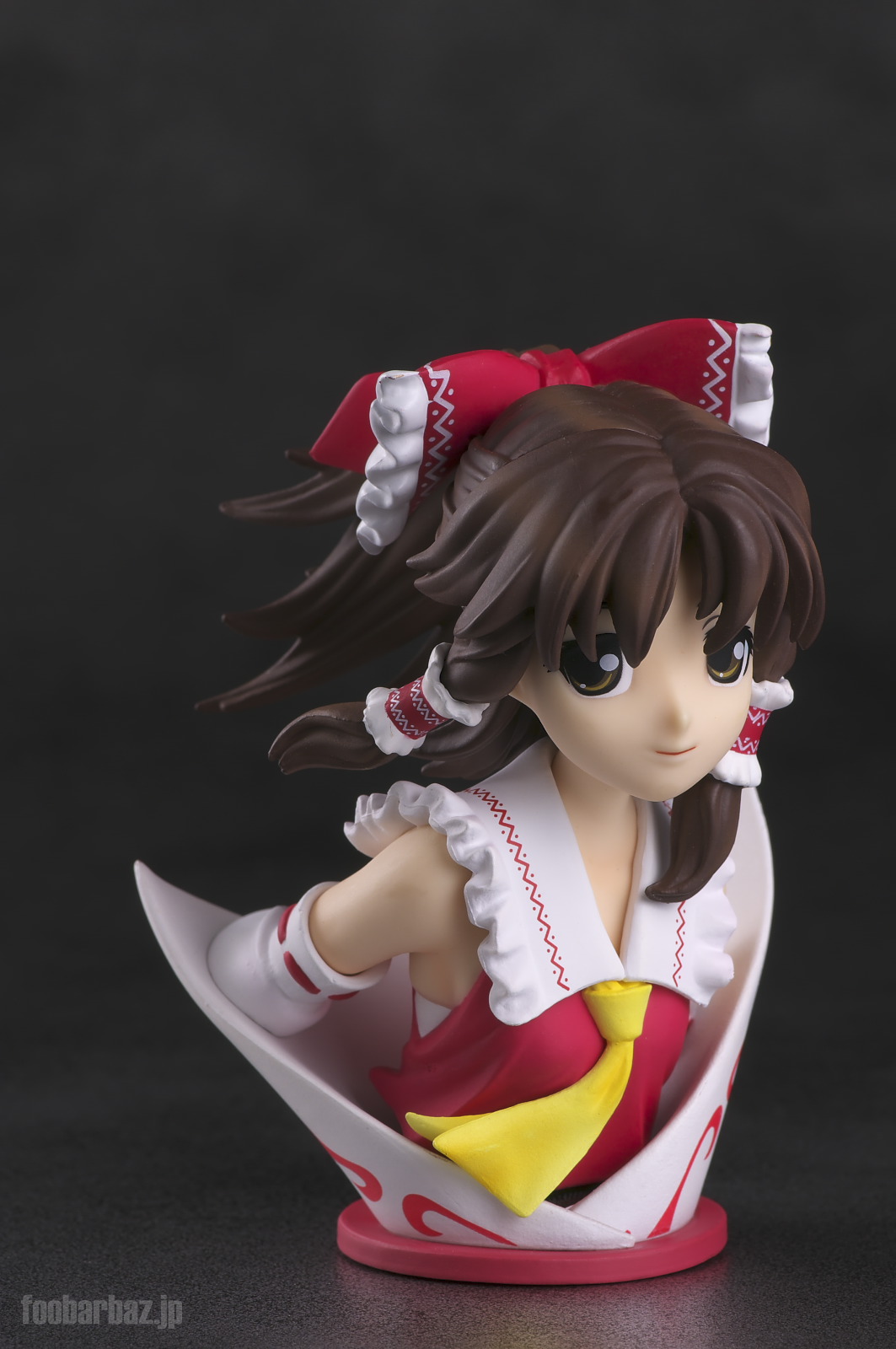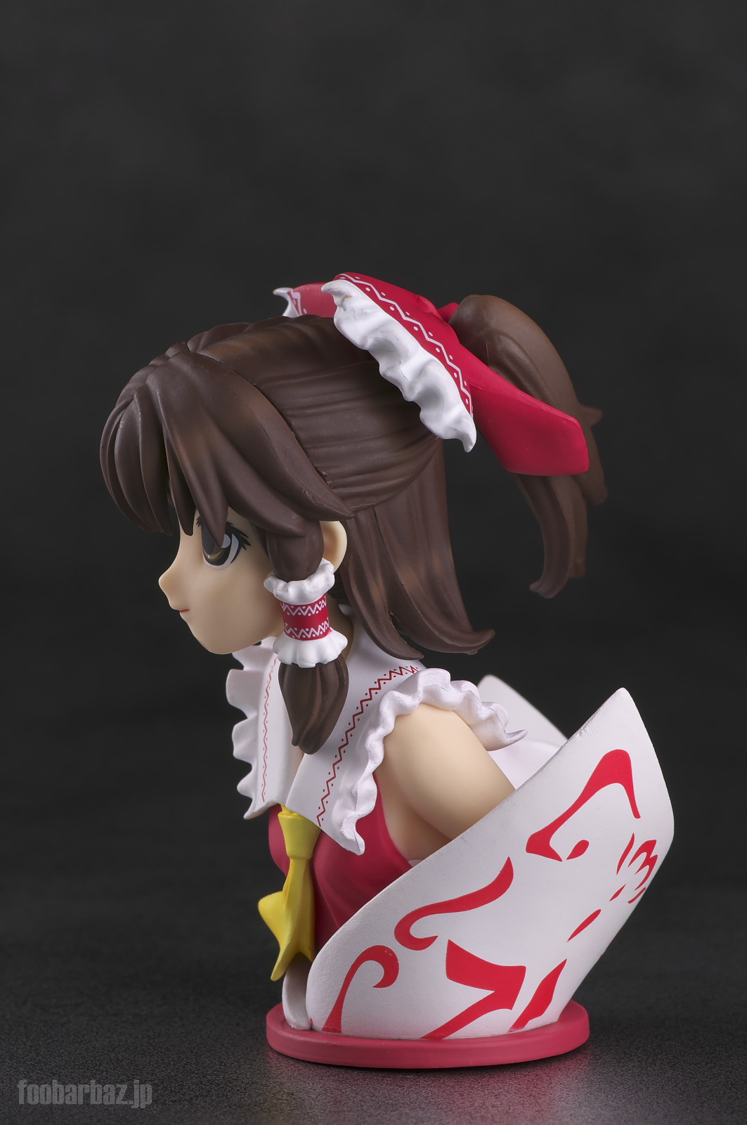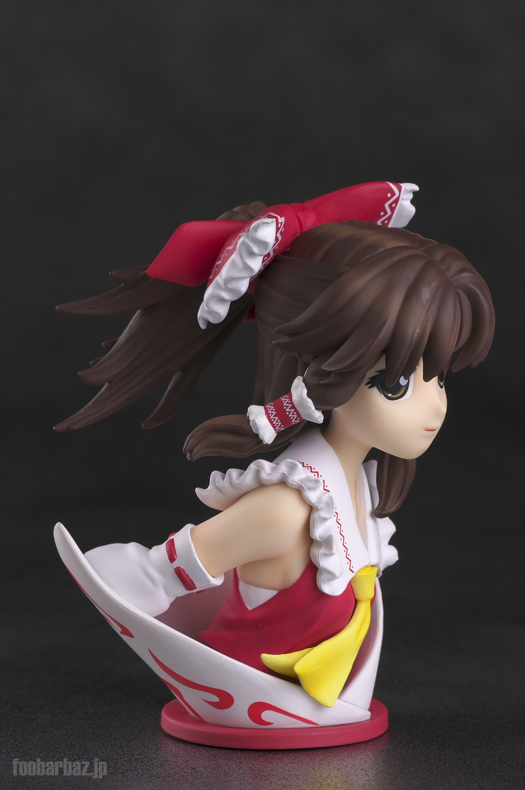 | おなじみの露出度高めの(^^;巫女服。 台座は座布団もといアミュレットをかたどったものでしょうか。 |