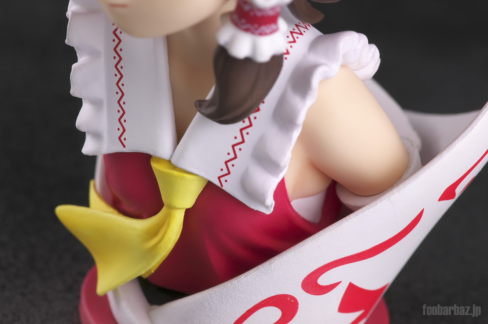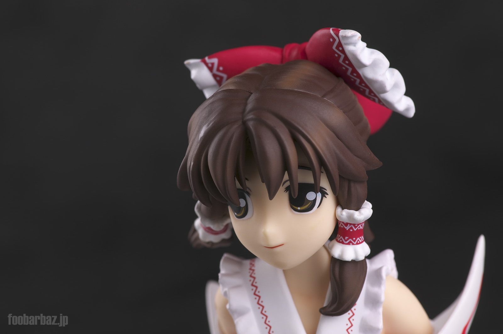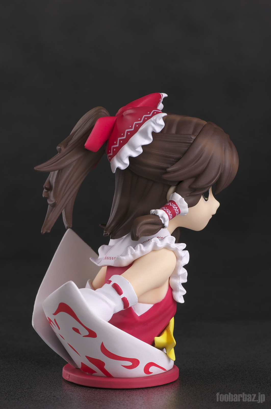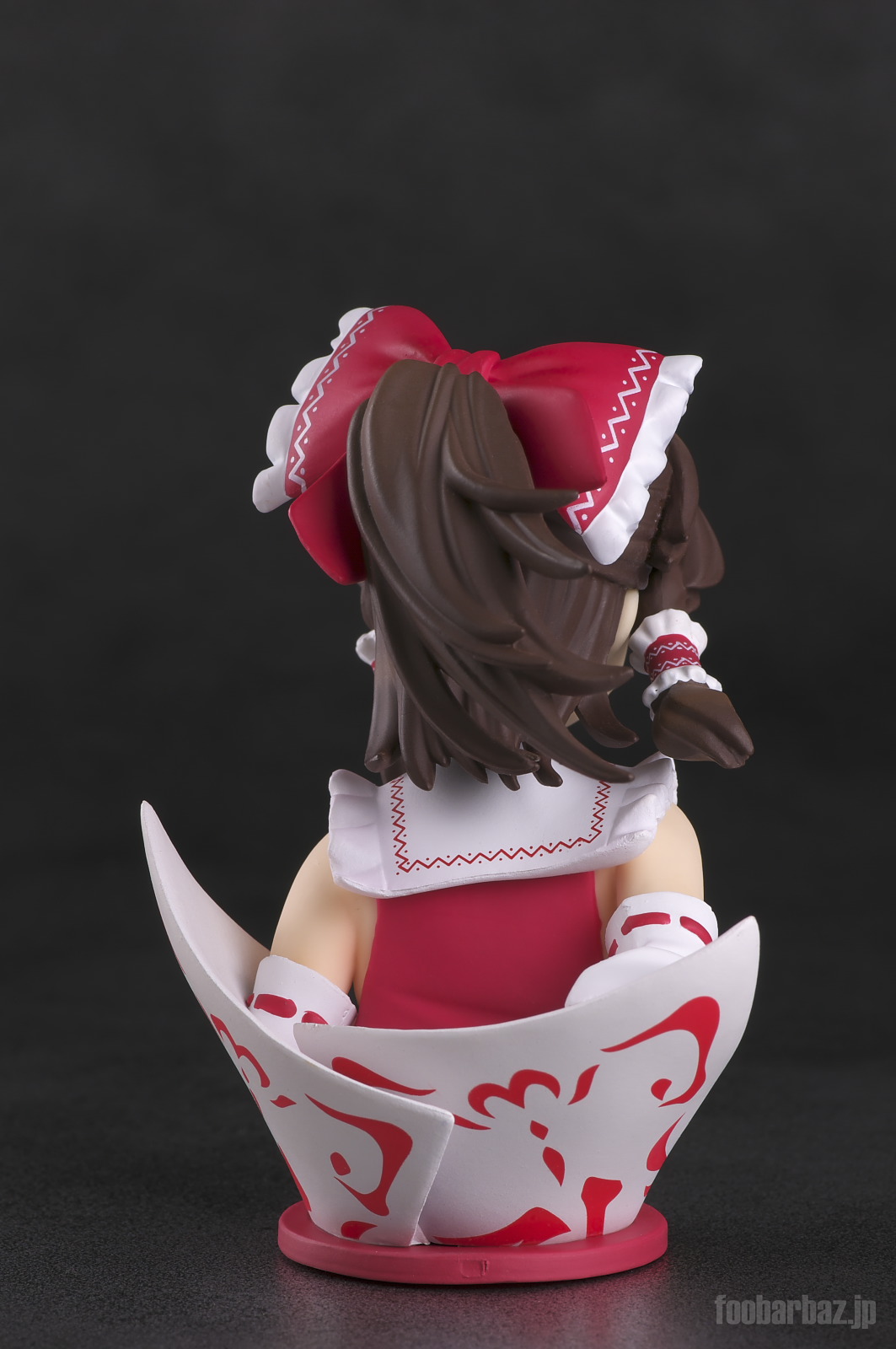 | おなじみの露出度高めの(^^;巫女服。 台座は座布団もといアミュレットをかたどったものでしょうか。 |