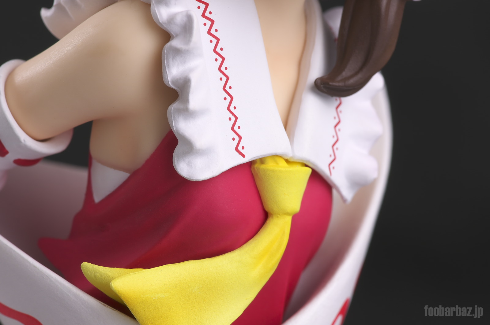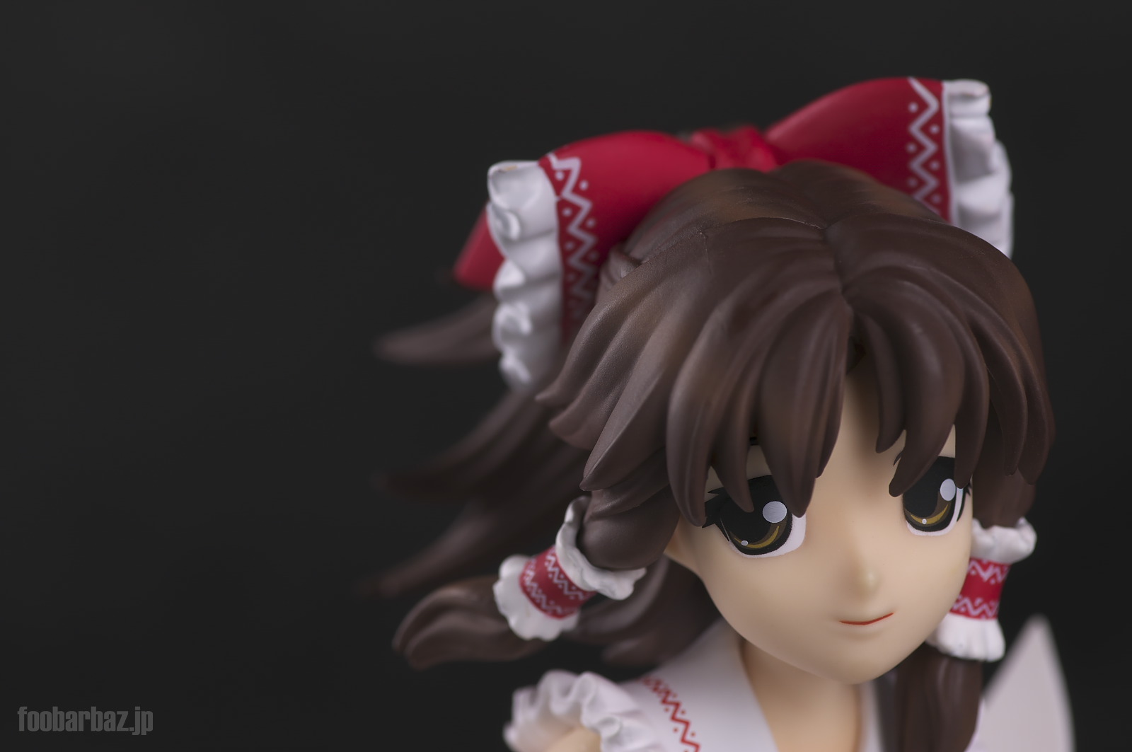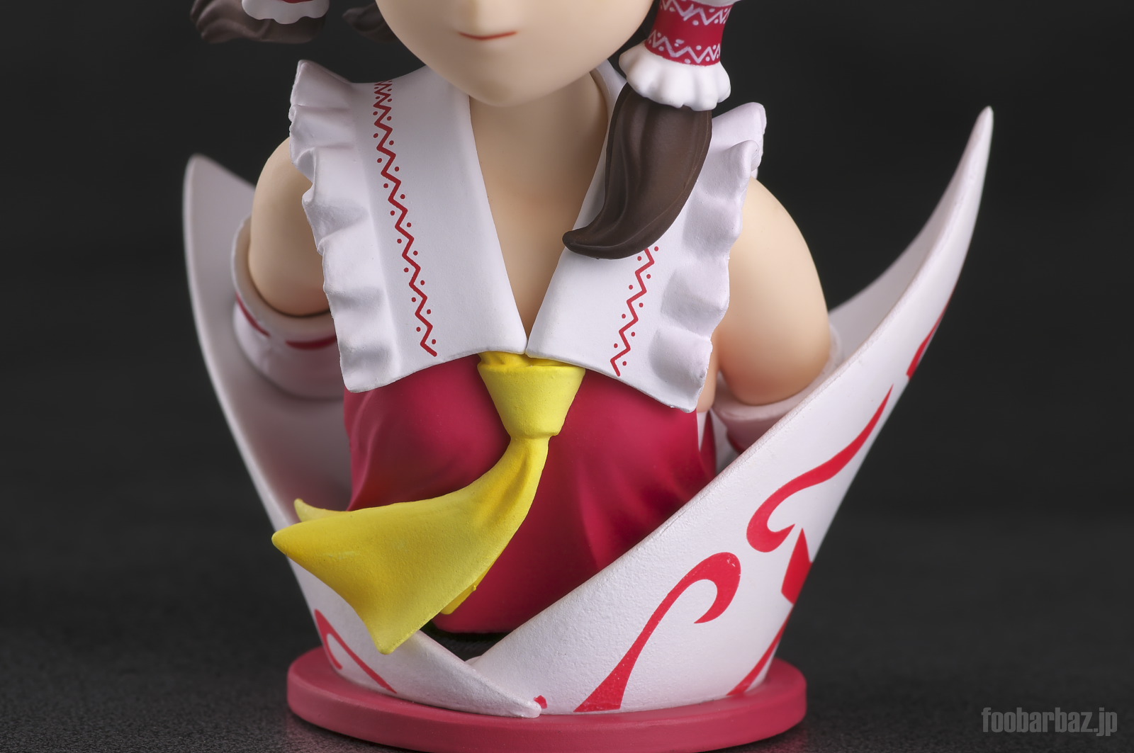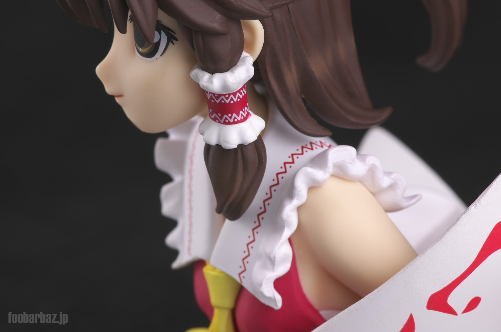 | おなじみの露出度高めの(^^;巫女服。 台座は座布団もといアミュレットをかたどったものでしょうか。 |