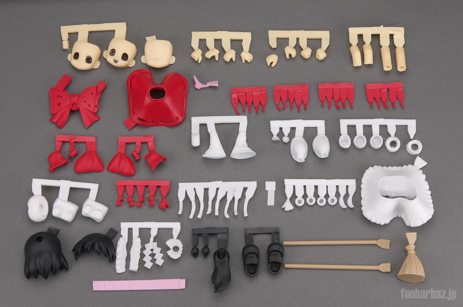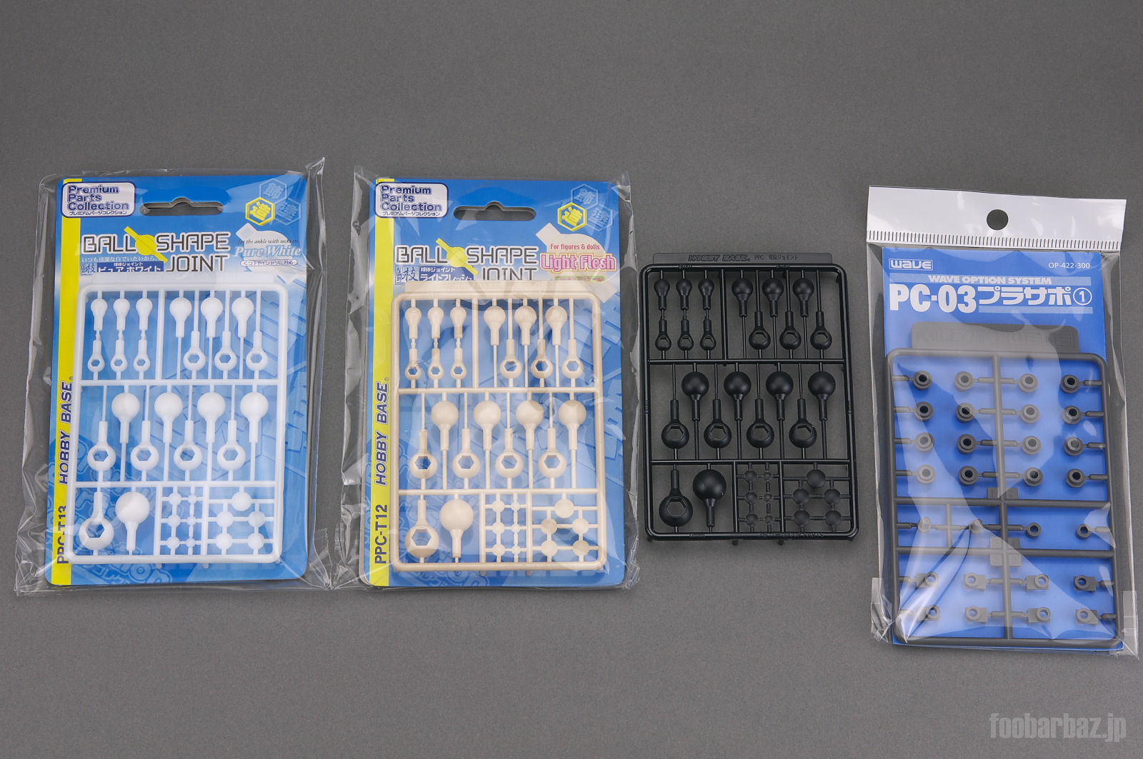 | 同梱の関節パーツ。ジョイントは白×1,フレッシュ×1,黒×1。 |