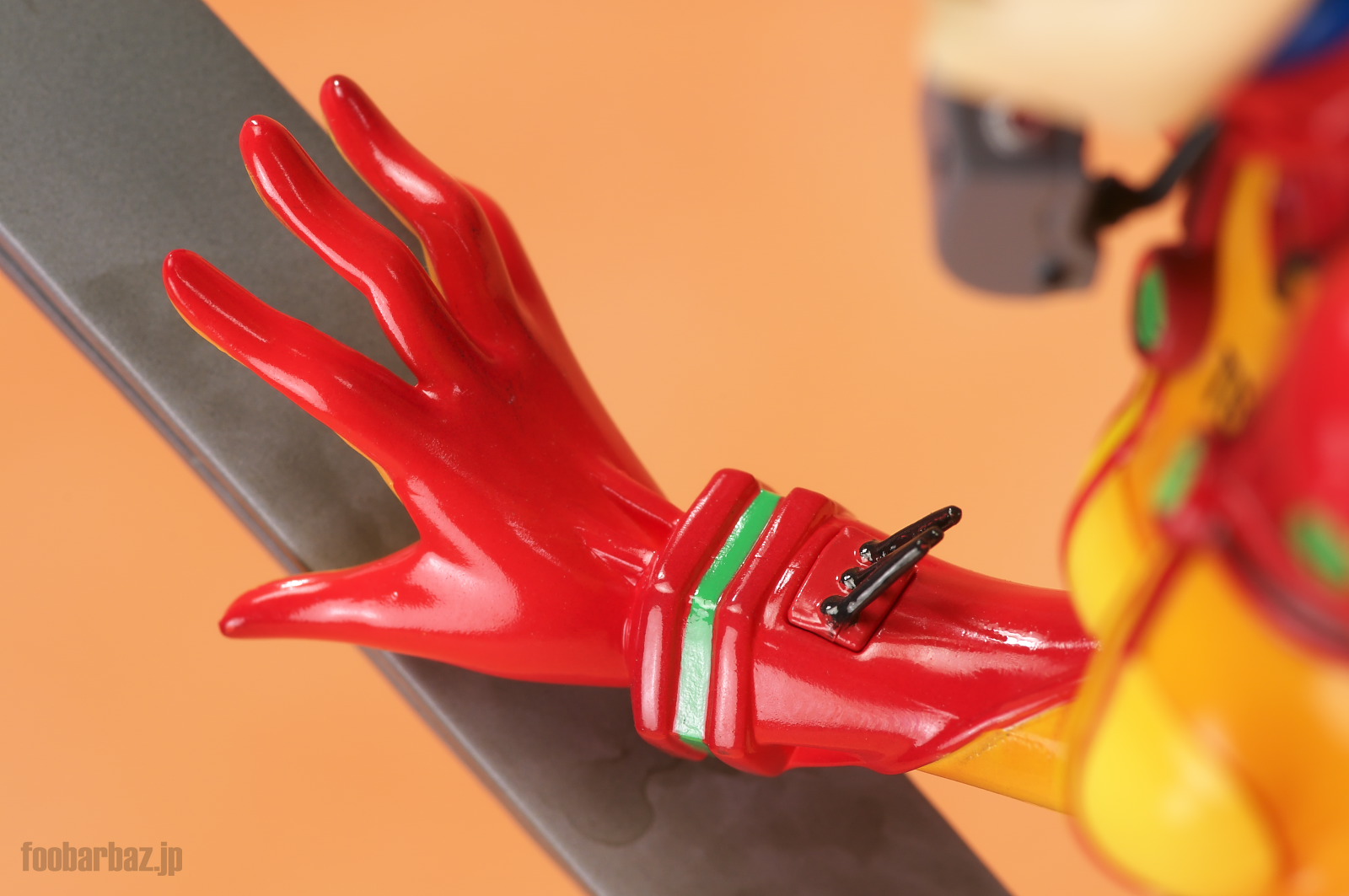 すらりと伸びたおみ足。プラグスーツはこのくらい足が長くないと映えないのでしょうね~。 本物のラバーのような,艶のある塗装もきれい。 |