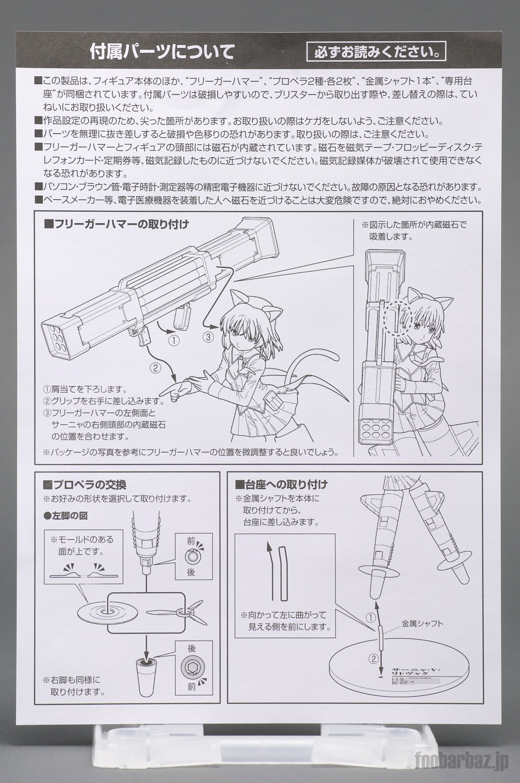 | 付属パーツの取り付け説明書が。 武装のフリーガーハマーは磁石で位置固定がされます。 |