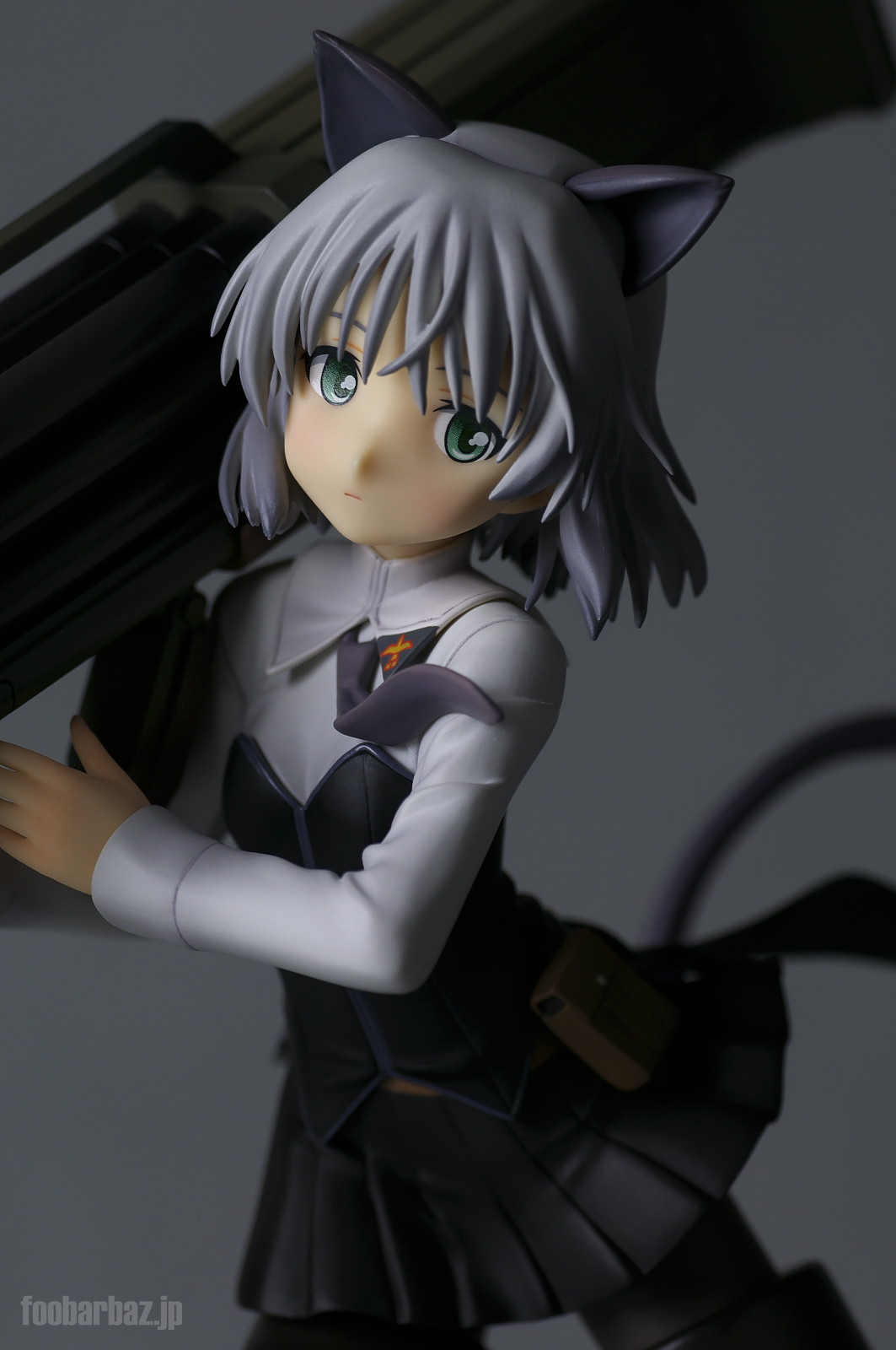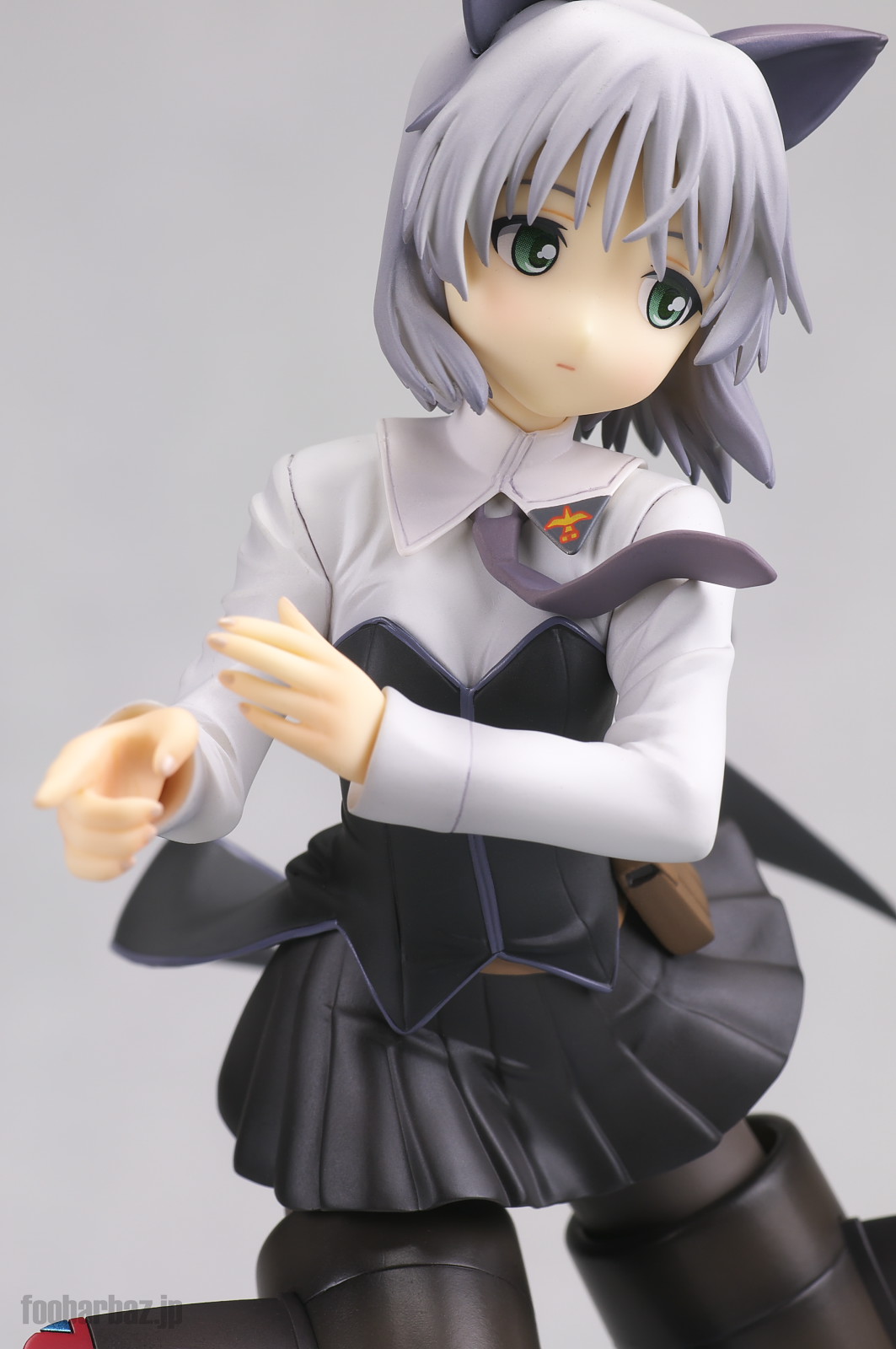 | 白のブラウスに黒のビスチェを付けたような,かわいらしいお召し物。 後ろは燕尾服のように大きく伸びています。 個人的にはストパンキャラの中で一番かわいい衣装かと。 塗装はやや荒め,特に単色部分にハゲや乱れが目立ちます。 | |