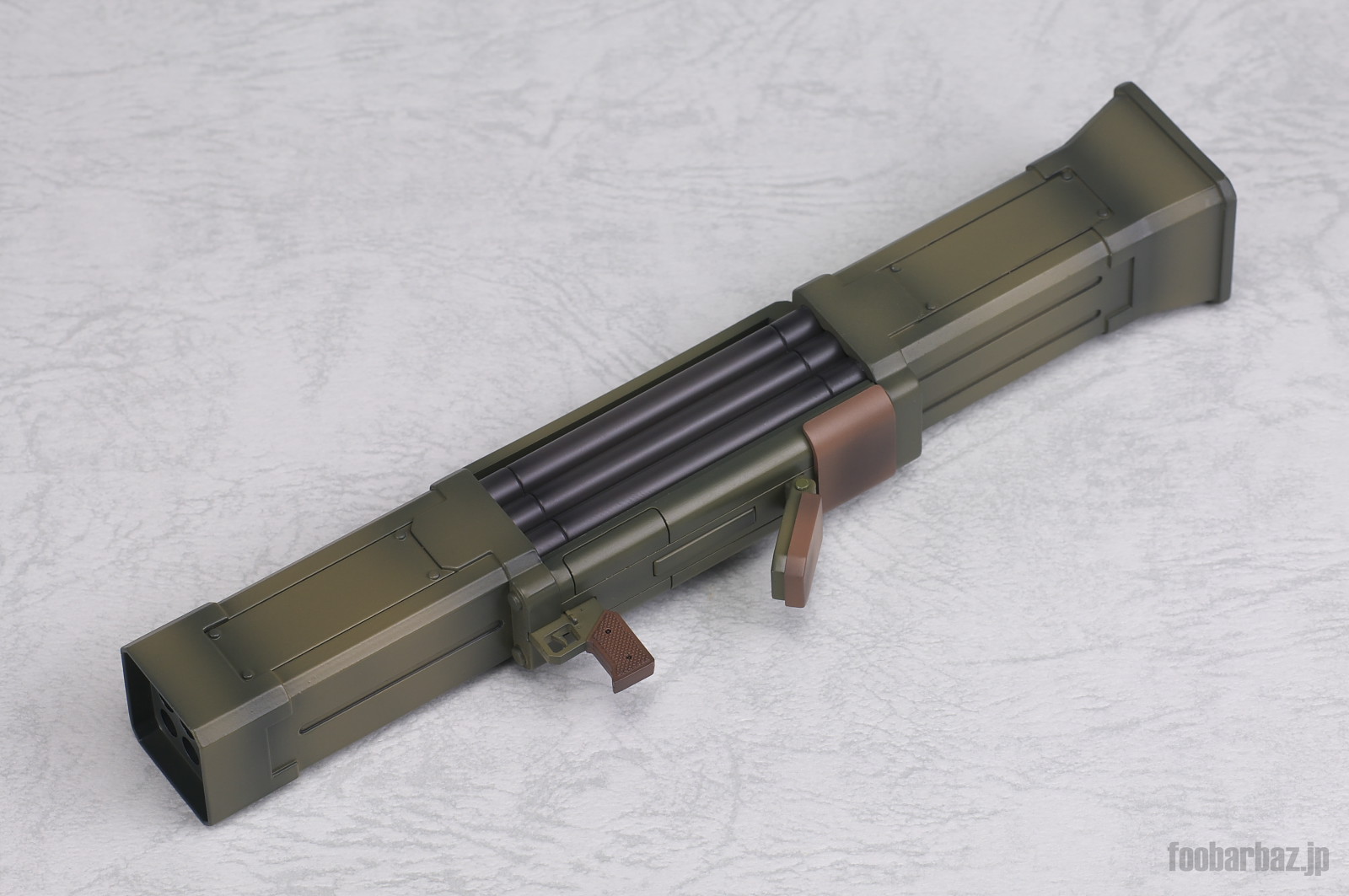 | 武装のフリーガーハマー。体躯に似合わぬ,ド迫力の武装ですね。 こちらは造形,塗装ともに文句なし。 肩当ての部分は可動もします。 |