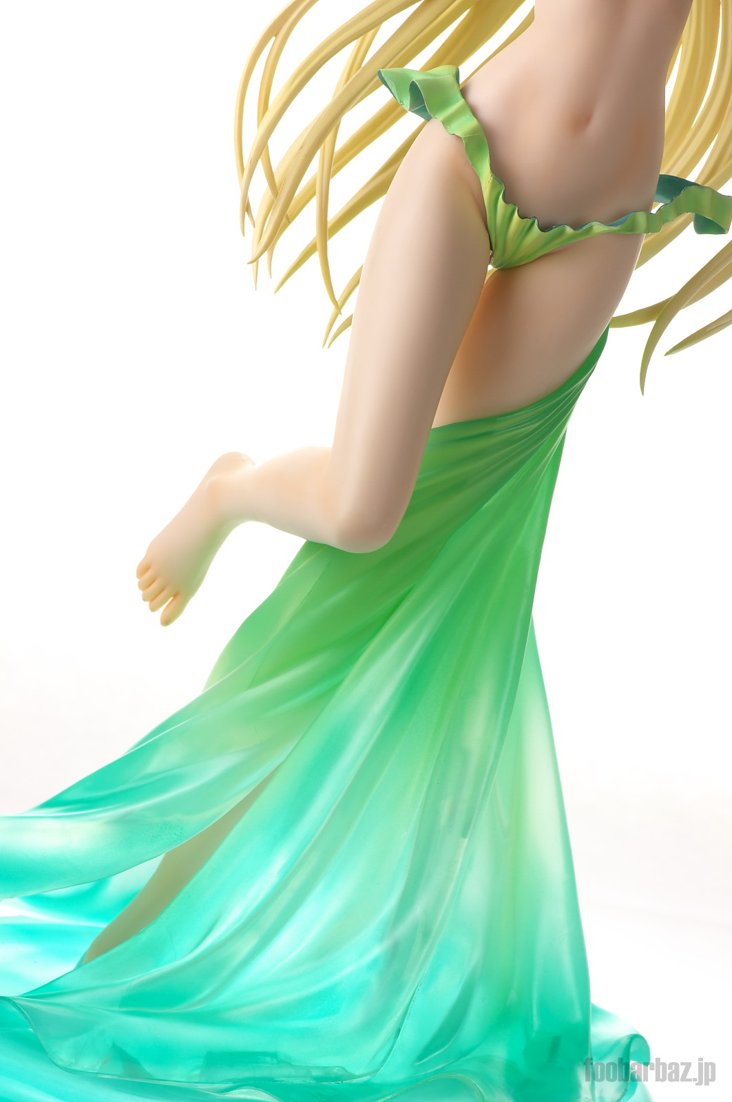 | 羽衣で隠すのがもったいないくらいの,なめらかで美しいおみ足。 引き締まった太ももに長く形の良いすね,かわいらしい素足まで手抜かり無しです。 クリア素材の羽衣のグラデーションもきれいですね。 | |