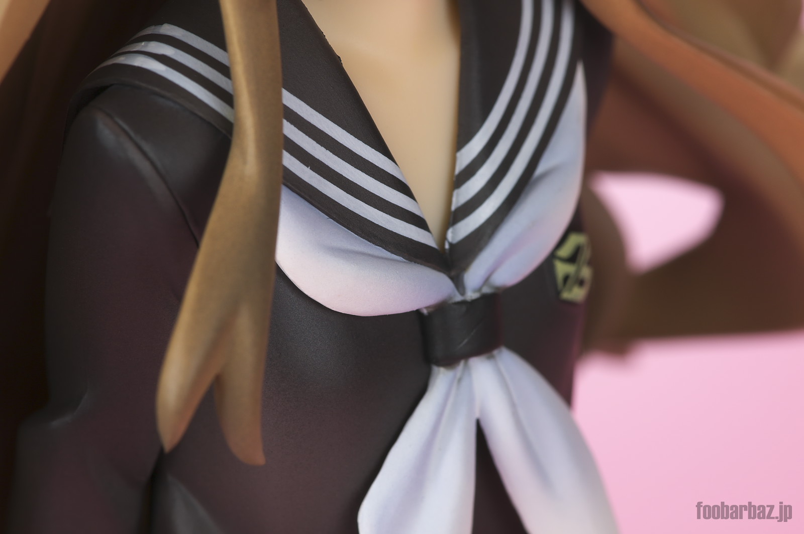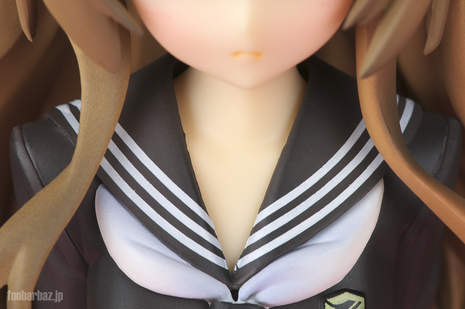 | ステロタイプな,3本白線の黒セーラー服。 栗色の豊かな髪の毛が黒に似合いますね~。 塗装はちょっと厚塗り気味ですが,黒一色のわりには汚れも少なくいい感じ。 ただ,光沢感はもう少し控えめでもよかったかな。 | |