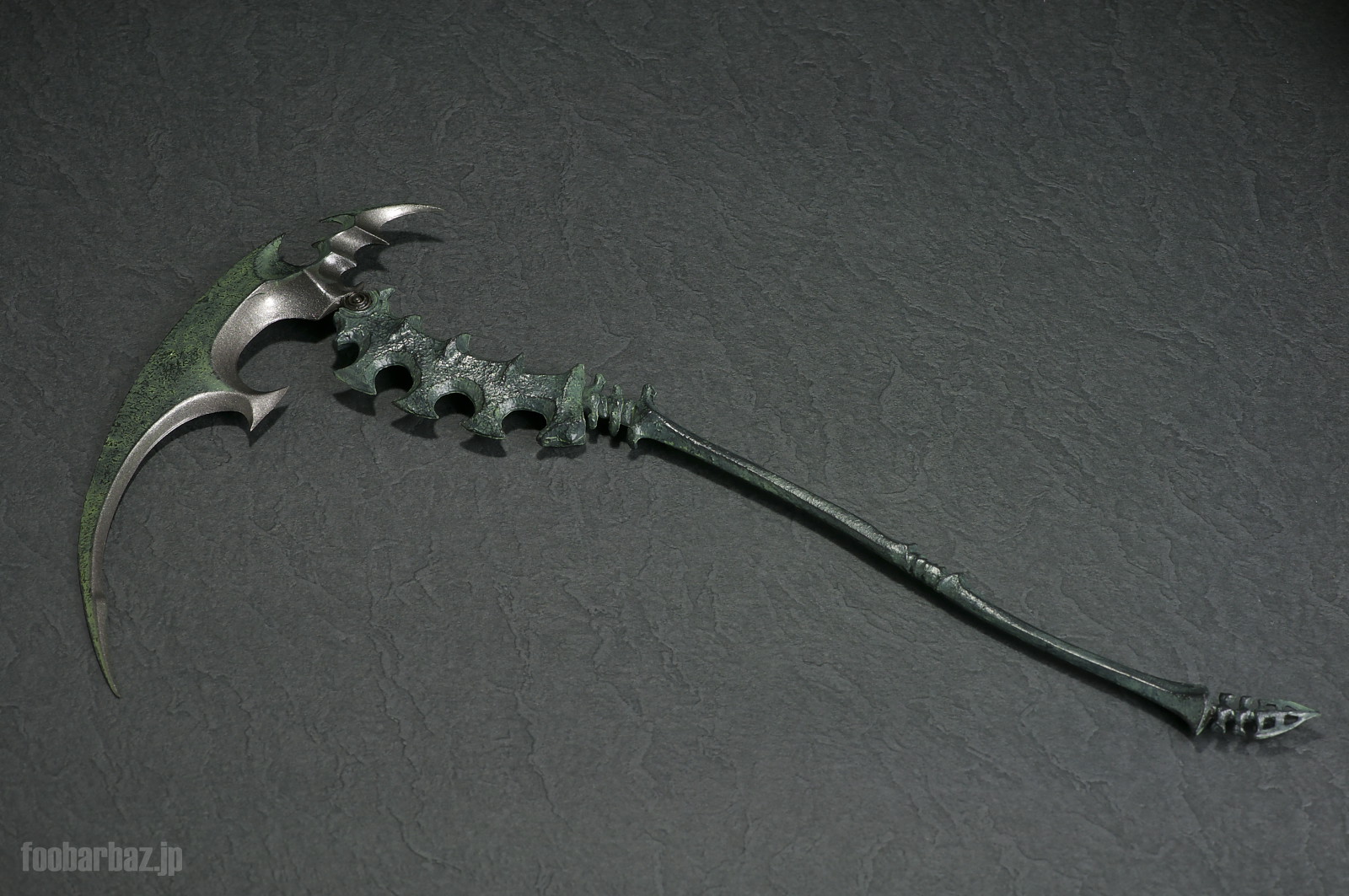迫力満点の『Dead scythe』。古びて緑青が吹き出たような塗装は見事の一言。 本当に切れそうなシャープな造形も文句なし。 |