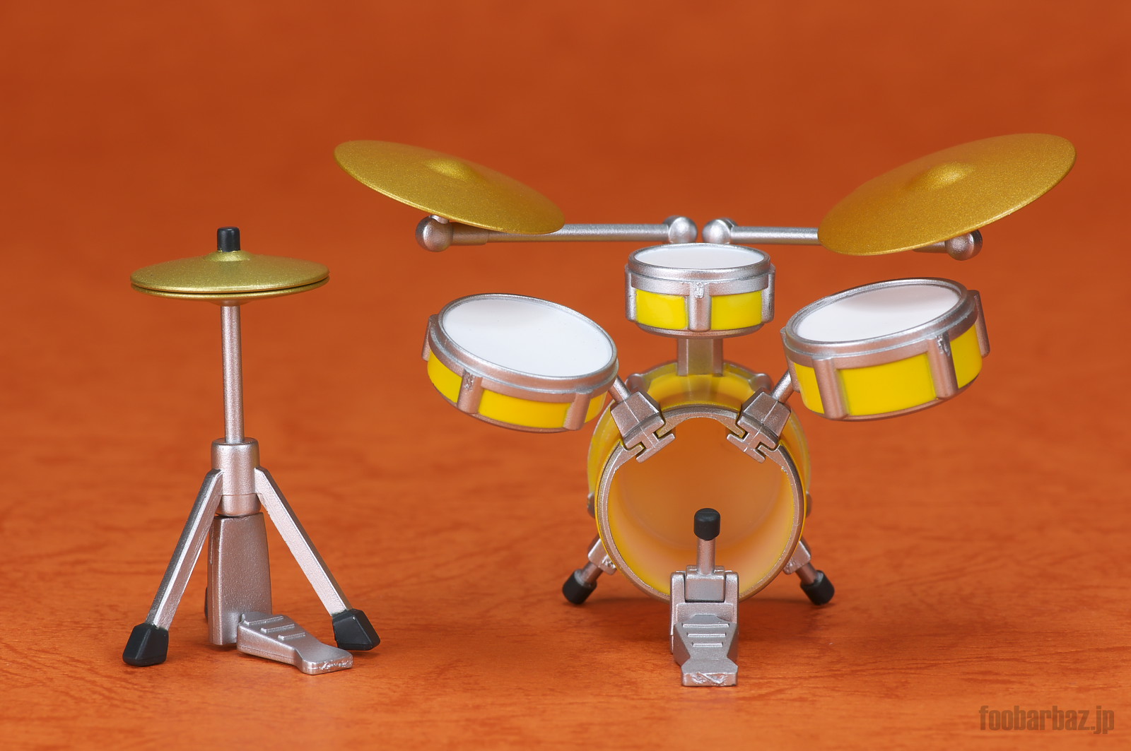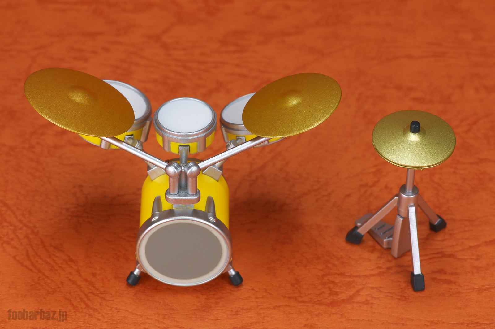 | デフォルメされてはいますが,ペダルまできっちり作り込んである造形はさすが。 欲を言えば,別スタンドのクラッシュかライドも1つは欲しかったなぁ(^^; |