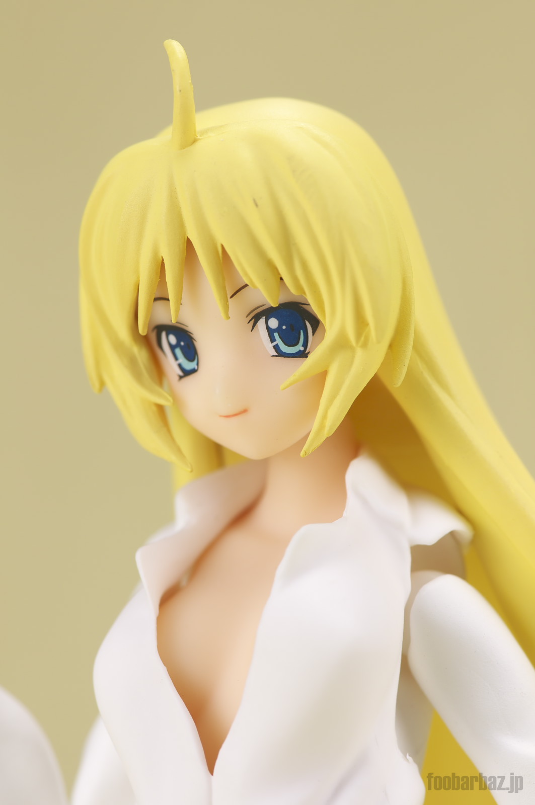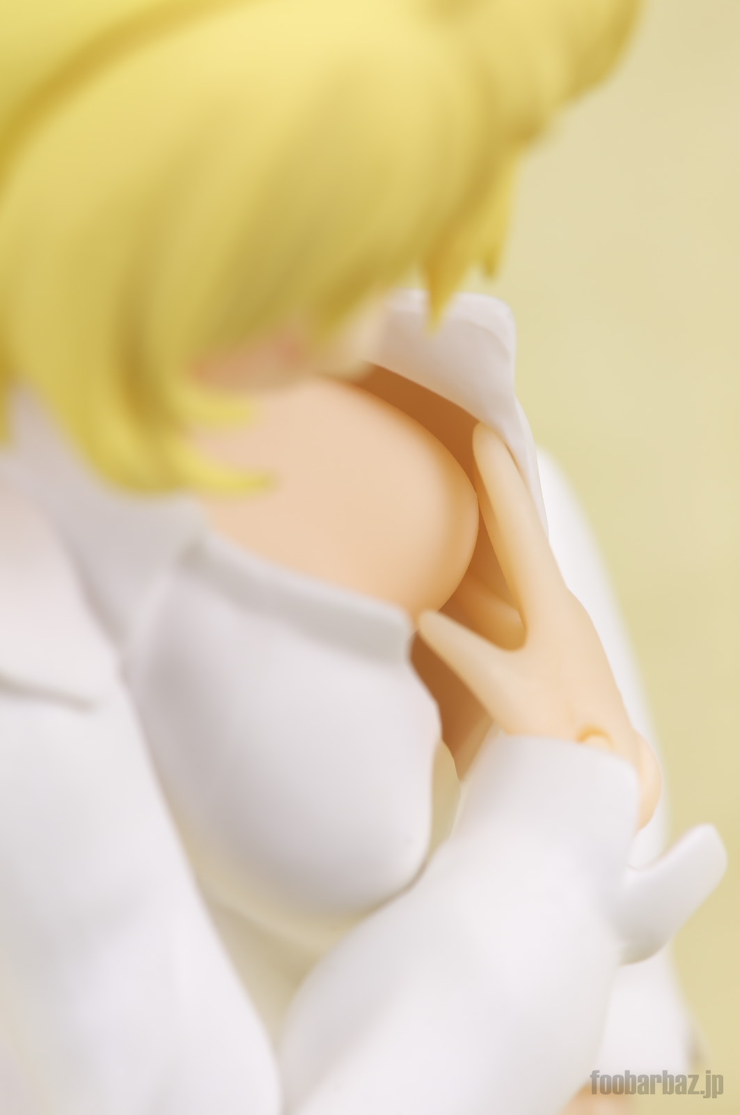 | 当フィギュア最大の特徴である,裸ワイシャツ(^^; 白無地のシンプルなワイシャツですが,塗装は汚れもほとんど無くきれい。 太ももまで届く長い髪の毛は,一部が別パーツになっており,ダル感もあまりありません。 | |
