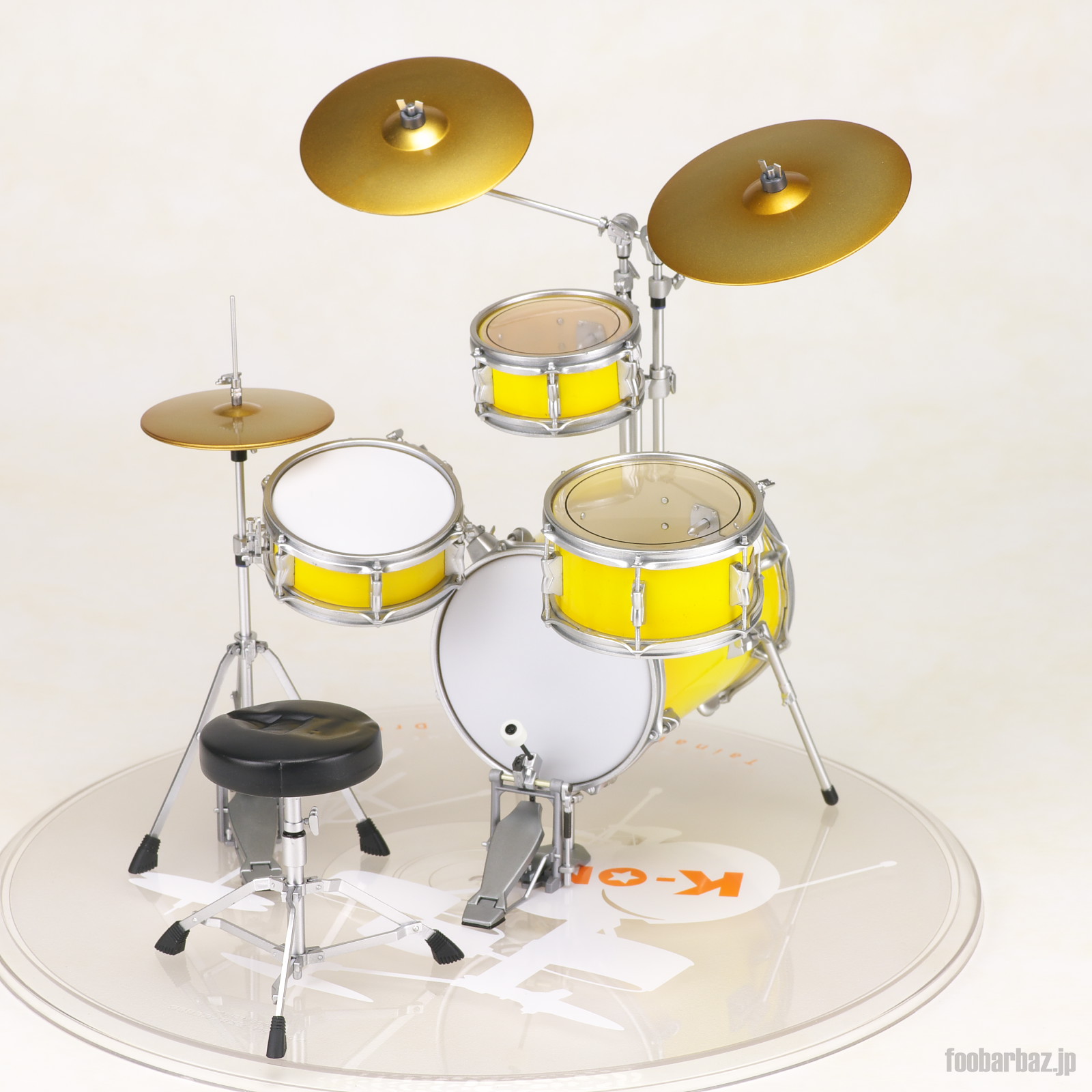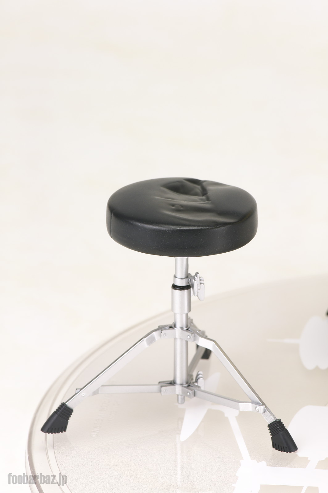 ドラムセットのみで。 本物と見まごうばかりの作り込みには驚かされます。 なお,ドラムセットも椅子も,台座には単に置くだけです。 |